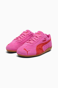 PRODUCT STORY An icon of racing culture, the PUMA Speedcat has been synonymous with speed, precision, and unparalleled performance for over 25 years. It originated as a fireproof Formula 1® footwear style, but over the decades it found itself on a new circuit – transcending the tracks of Monaco for the streets of global fashion capitals. Wrapped in soft suede and premium leather, this silhouette is reissued in its original red and black colorways with a new PUMA Cat Logo at the front. FEATURES & BENEFITS - IMEVA: PUMA's material for a lightweight and comfortable feel - PUMA's leather products support responsible manufacturing via the Leather Working Group. www.leatherworkinggroup.com DETAILS - Style: 400986_56 - Color: Pink Pixel-Glowing Red - Leather upper - Rubber midsole - Rubber outsole - Suede PUMA Formstrip - PUMA Cat embroidered on the toe