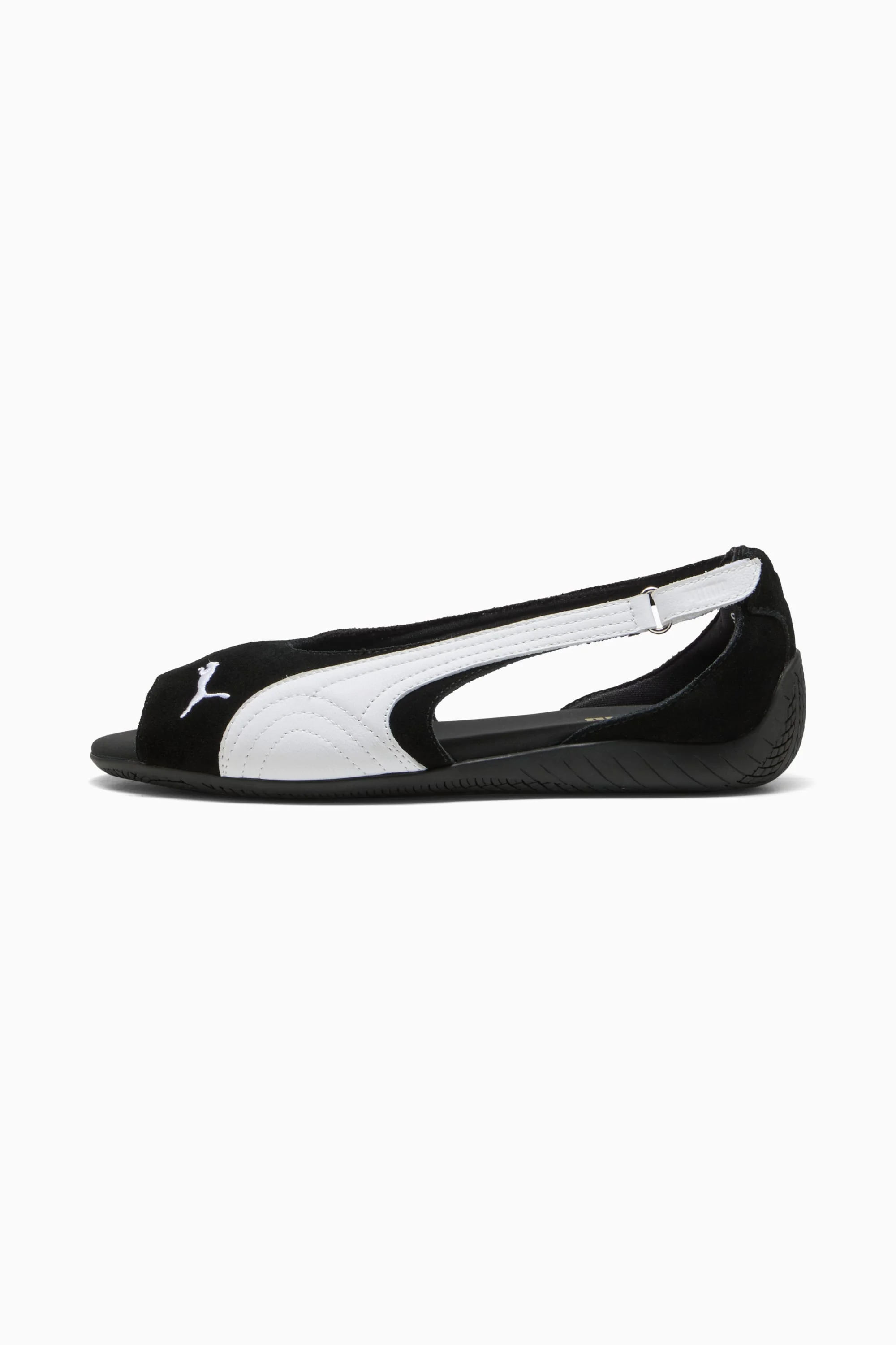 PRODUCT STORY Speedcat Sandals blend motorsport DNA with modern ease. The low-profile design, soft cushioning, and signature PUMA details create a look that’s equal parts bold and effortless – perfect for summer days, city strolls, and everything in between. DETAILS - Style: 404839_01 - Color: PUMA Black-PUMA White - Width: Regular - Toe type: Open - Closure: Slip on - Hook and loop strap - Heel type: Flat - Cushioned midsole - PUMA Cat logo MATERIAL INFORMATION - Midsole: 100% Synthetic - Sockliner: 100% Synthetic - Outsole: 100% Rubber - Upper: 100% Leather - cow - Lining: 100% Textile