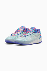 PRODUCT STORY The Stewie 4 Prism Basketball Shoes draw inspiration from the infinite possibilities of light as it refracts through a prism, creating a mesmerizing spectrum of colors. This concept comes to life with iridescent and crystallized materials that adorn the Formstrip and upper mesh, delivering a striking, luminous effect. Designed for both style and performance, these shoes let you shine on and off the court. FEATURES & BENEFITS - ProFoam: Lightweight EVA designed to cushion your landing and propel your next step - NITROFOAM™: Advanced nitrogen-infused foam designed to provide superior responsiveness and cushioning in a lightweight package - The upper of the shoes is made with at least 20% recycled materials DETAILS - Style: 311062_01 - Color: PUMA White-Light Aqua - Regular width - Engineered woven mesh upper - Lace closure - Traditional construction with a profoam midsole for quick first step - High abrasion floral tread pattern for added traction with non-slip rubber compounds - Breanna Stewart branding details - PUMA branding details MATERIAL INFORMATION - Midsole: 100% Synthetic - Sockliner: 100% Textile - Outsole: 100% Rubber - Upper: 60% Textile, 40% Synthetic - Lining: 100% Textile