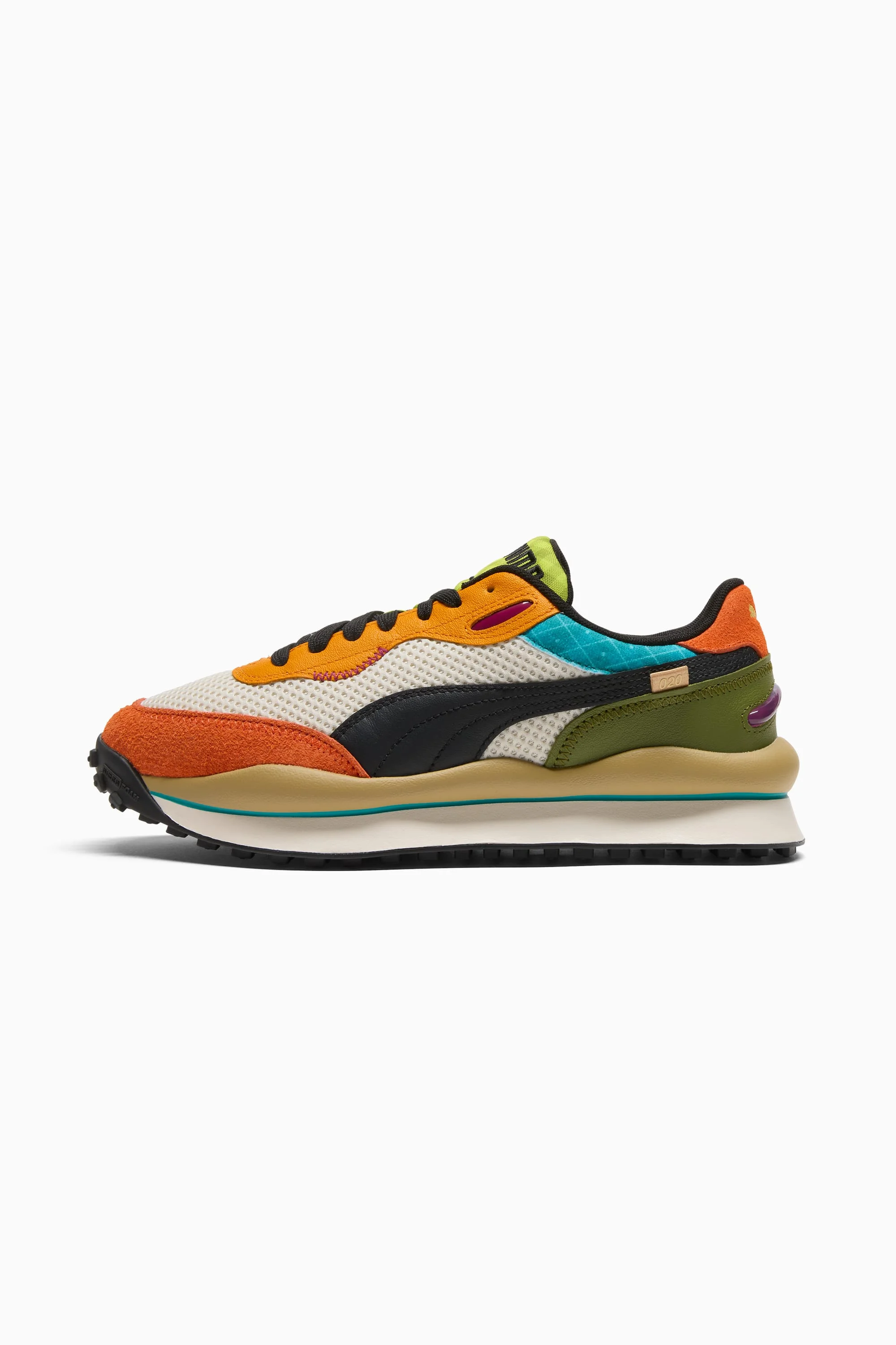 PRODUCT STORY Sprint into retro vibes with zig-zag stitching and TPU Gel details for a bold look. The textile upper and suede overlays provide versatility, while the Federbein outsole ensures smooth strides. Perfect for street runs or casual hangouts, PUMA branding completes the look with iconic energy. DETAILS - Style: 405745_01 - Color: Prairie Tan-Chili Powder-Dark Poppy - Width: Regular - Toe Type: Rounded - Fastener: Laces - Heel type: Flat MATERIAL INFORMATION - Midsole: 100% Synthetic - Sockliner: 100% Textile - Outsole: 100% Rubber - Upper: 70% Leather - cow, 29% Textile, 1% Synthetic - Lining: 100% Textile