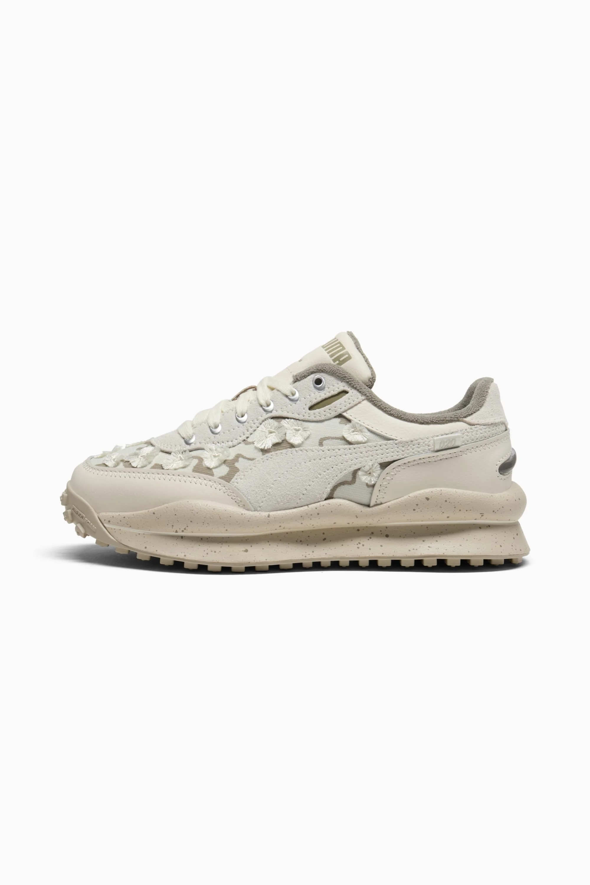 PRODUCT STORY Vintage vibes meet modern flair with PUMA's latest kicks, Style Rider Trim. Featuring a textile upper, suede and synthetic overlays, and TPU Gel details, these sneakers are all about bold style. Zig-zag stitching and Federbein outsole complete the look, making every step an adventure. DETAILS - Style: 403532_01 - Color: Warm White-Desert Dust-Vapor Gray - Low boot - Lace closure - Regular fit - Rubber outsole - PUMA branding details MATERIAL INFORMATION - Midsole: 100% Synthetic - Sockliner: 100% Textile - Outsole: 100% Rubber - Upper: 74.90% Leather - cow, 23.80% Textile, 1.30% Synthetic - Lining: 100% Textile