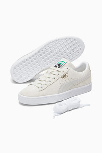 PRODUCT STORY The Suede hit the scene in 1968 and has been changing the game ever since. It’s been worn by the icons of every generation and it’s stayed classic through it all. This year, we relaunch the Suede with fresh colorways and subtle design updates. Classic as ever. DETAILS - Style: 381410_10 - Color: Marshmallow-Puma White - Classic Suede lo-top silhouette - Full suede upper - Synthetic leather lining - Full lace closure - Additional laces included - Comfort sockliner for instant step-in cushioning - Rubber midsole and outsole for durable grip and traction - Gold metallic foil PUMA Suede callout at lateral side - PUMA Formstrip overlay at sides with perforated detailing - PUMA Archive woven label at tongue MATERIAL INFORMATION - Sockliner: 100% Textile - Outsole: 100% Rubber - Upper: 97.19% Leather - cow, 2.81% Synthetic - Lining: 56.13% Textile, 43.87% Synthetic