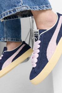 PRODUCT STORY The Suede hit the scene in 1968 and has been changing the game ever since. While many sneakers have come and gone since then – leaving footprints of varying sizes – it's difficult to argue any shoe having as much of a deep-rooted impact on society and culture as the Suede. From Tommie Smith’s protest on the victory stand during the 1968 games to b-boy crews in NYC adopting the shoe in the 1980s, the Suede is constantly evolving since its birth in 1968. This style came to celebrate a breakdance culture with a B-girl Laneski execution, prominent on scene in the 80s. We took a retro style collection and brought it back for today’s vintage connoisseurs with the archive logos and yellowed tooling for an authentic vintage feel. FEATURES & BENEFITS - PUMA’s leather products support responsible manufacturing via the Leather Working Group.www.leatherworkinggroup.com - SOFTFOAM+: Step-in comfort sockliner designed to provide soft cushioning thanks to its extra thick heel DETAILS - Style: 396466_01 - Color: PUMA Navy-Light Straw - Hairy suede upper - Thick laces - Synthetic lining - Textile sockliner - Rubber outsole MATERIAL INFORMATION - Sockliner: 100% Textile - Outsole: 100% Rubber - Upper: 100% Leather - Lining: 72.19% Textile, 27.81% Synthetic