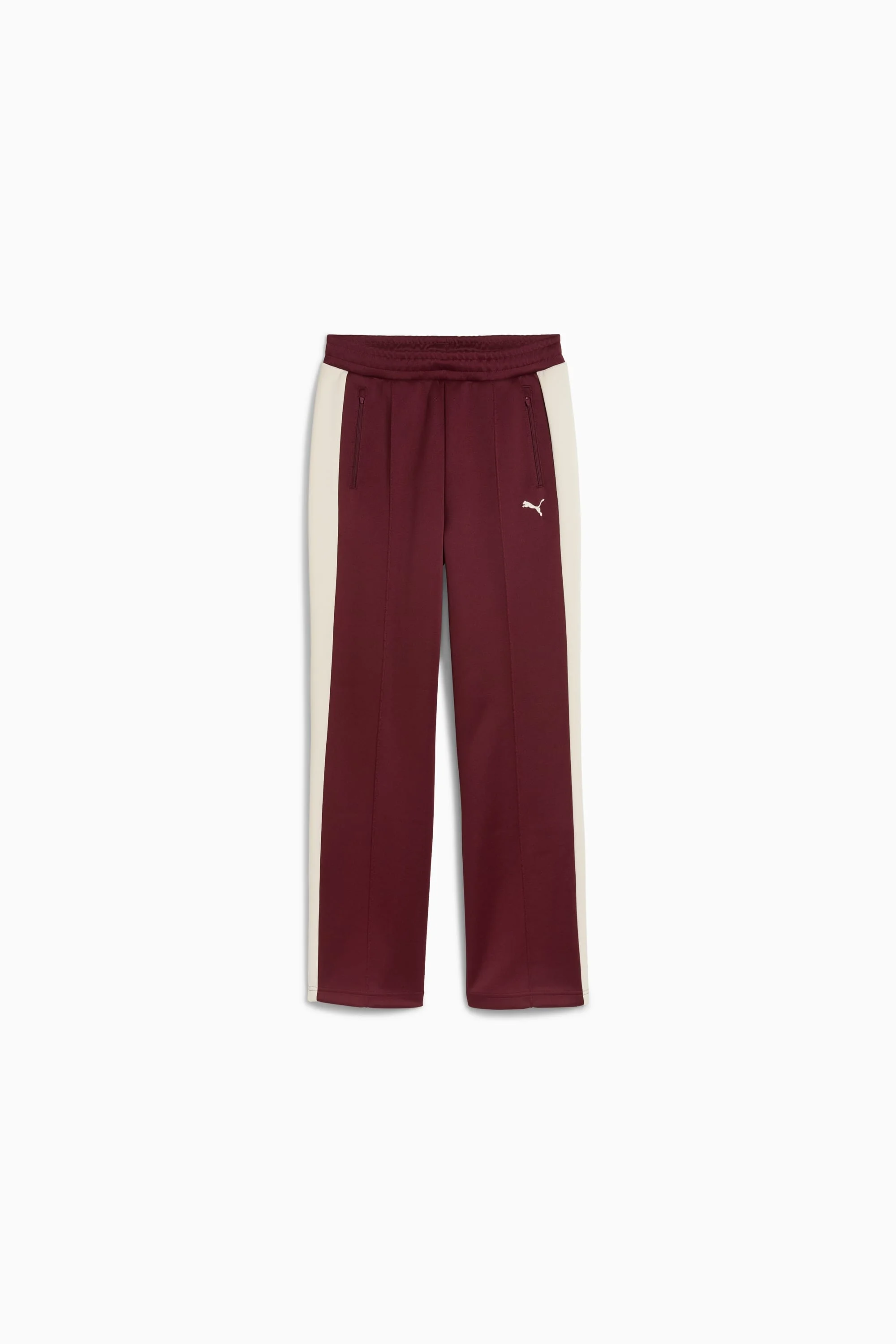 PRODUCT STORY Elevate your look with PUMA's straight track pants. With classic T7 panel inserts, pintuck detailing, and zip pockets, these pants are as function as they are stylish. The elasticated waistband and tonal drawcords ensure a perfect fit, while the iconic logo highlights our heritage. FEATURES & BENEFITS - Made with at least 50% recycled materials DETAILS - Style: 629797_96 - Color: Ruby Shimmer - Comfort fit - Spacer fabric - Regular length - Seam Pocket - PUMA branding details MATERIAL INFORMATION - Upper Pocket Bag: 100% cotton - Shell: 67% polyester, 33% cotton - Rib: 100% cotton