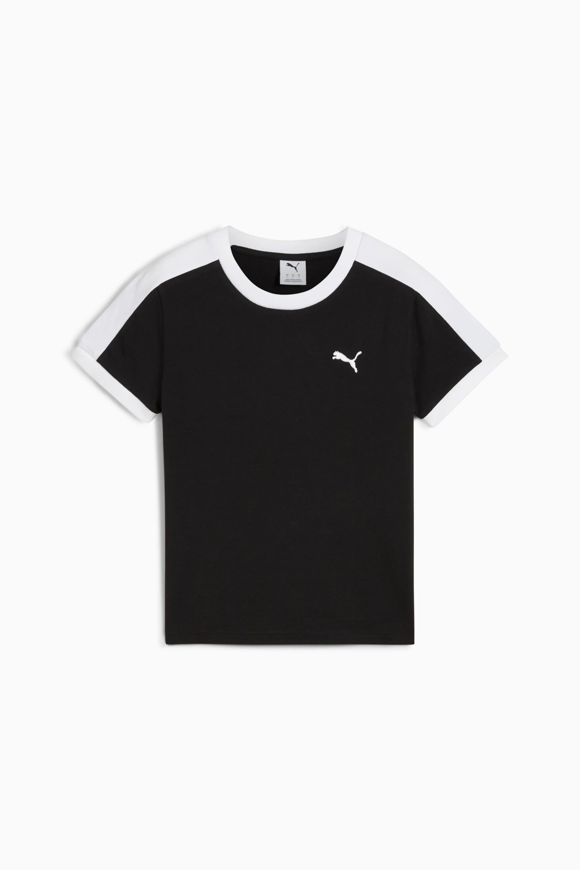 PRODUCT STORY The T7 tracksuit first hit the scene in 1968 and has been redefining style ever since. Today, it's still a timeless streetwear essential, instantly recognizable for its classic cutlines, tapered side panels, and PUMA branding. Now it's back with modern updates and refined details—combining heritage with fresh energy for a new generation. FEATURES & BENEFITS - Made with at least 20% recycled cotton. DETAILS - Style: 632129_01 - Color: PUMA Black - Fit: Slim - Main Material: Single jersey - Neck: Ribbed crew neck - Short sleeves - Ribbed cuffs - Length: Short - Signature PUMA T7 (7cm) stripes along the sleeves MATERIAL INFORMATION - Shell: 95% cotton, 5% elastane - Rib: 80% cotton, 20% polyester