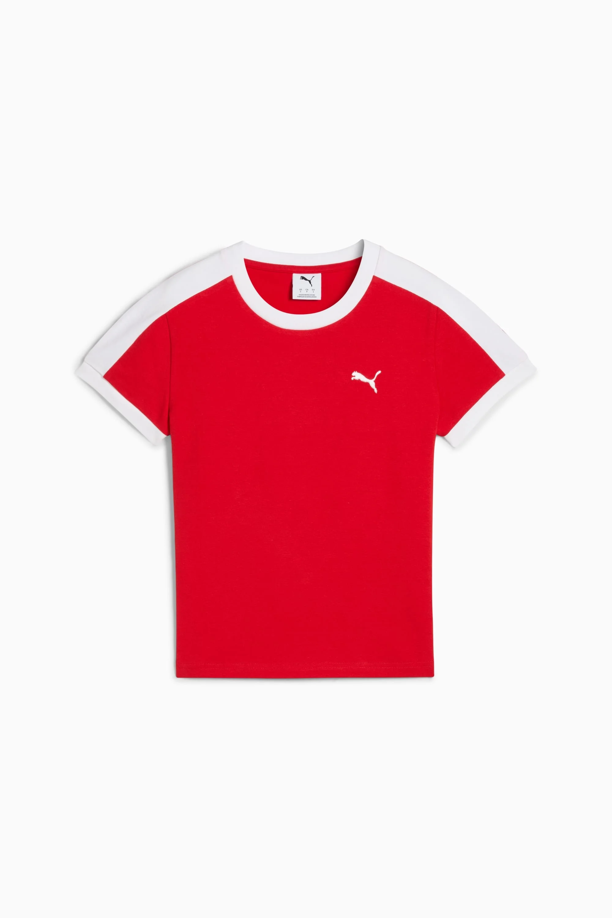 PRODUCT STORY The T7 tracksuit first hit the scene in 1968 and has been redefining style ever since. Today, it's still a timeless streetwear essential, instantly recognizable for its classic cutlines, tapered side panels, and PUMA branding. Now it's back with modern updates and refined details—combining heritage with fresh energy for a new generation. FEATURES & BENEFITS - Made with at least 20% recycled cotton. DETAILS - Style: 632129_11 - Color: For All Time Red - Fit: Slim - Main Material: Single jersey - Neck: Ribbed crew neck - Short sleeves - Ribbed cuffs - Length: Short - Signature PUMA T7 (7cm) stripes along the sleeves MATERIAL INFORMATION - Shell: 95% cotton, 5% elastane - Rib: 80% cotton, 20% polyester