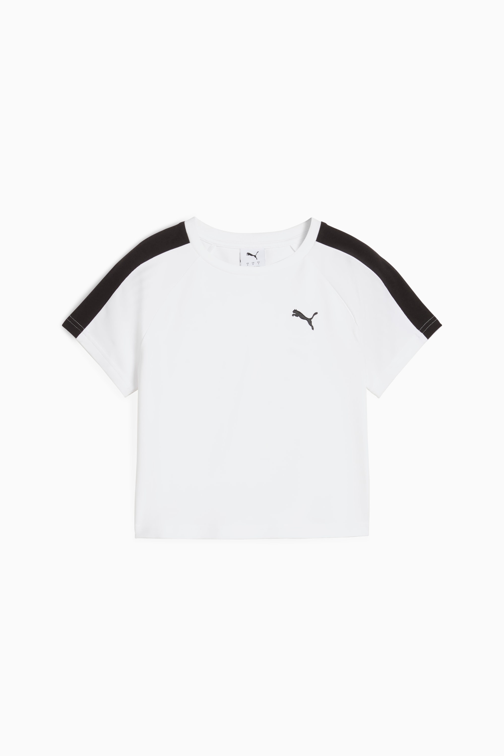 PRODUCT STORY With T7 panel inserts, a ribbed neckline, and the iconic Cat logo, this baby tee is a PUMA Classic. It's perfect for adding a sporty edge to your look. Feel the energy and make a statement every day. FEATURES & BENEFITS - Made with at least 20% recycled cotton DETAILS - Style: 629802_02 - Color: PUMA White - Slim fit - Single jersey fabric - Cropped length - Crew neck - PUMA branding details