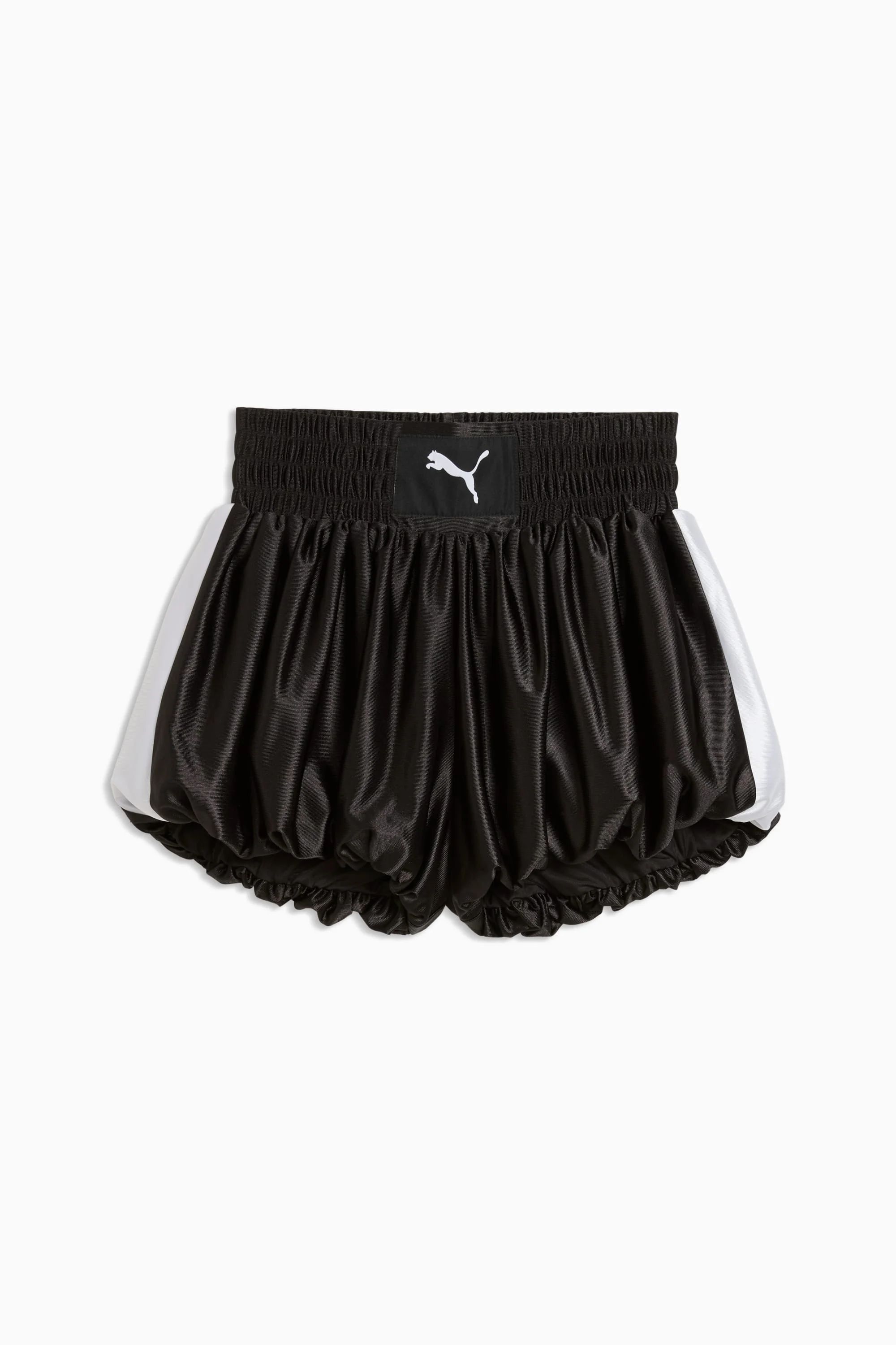 PRODUCT STORY The T7 tracksuit made its debut in 1968 and has been changing the game ever since. With its signature side panels, clean cutlines, and unmistakable PUMA DNA, the T7 has achieved icon status. This season we've amplified the classic with a bold colour palette, a range of relaxed and cropped fits, and an oversized PUMA Cat Logo for extra attitude. These shorts have a voluminous silhouette for an on-trend look. FEATURES & BENEFITS - Made with 100% recycled material excluding trims & decorations. DETAILS - Style: 636887_01 - Color: PUMA Black - Fit: Relaxed - Main material type: Tricot - Elasticised waist - Length: Short - Rise: High MATERIAL INFORMATION - Inserts: 100% polyester - Body Lining: 100% polyester - Shell: 100% polyester