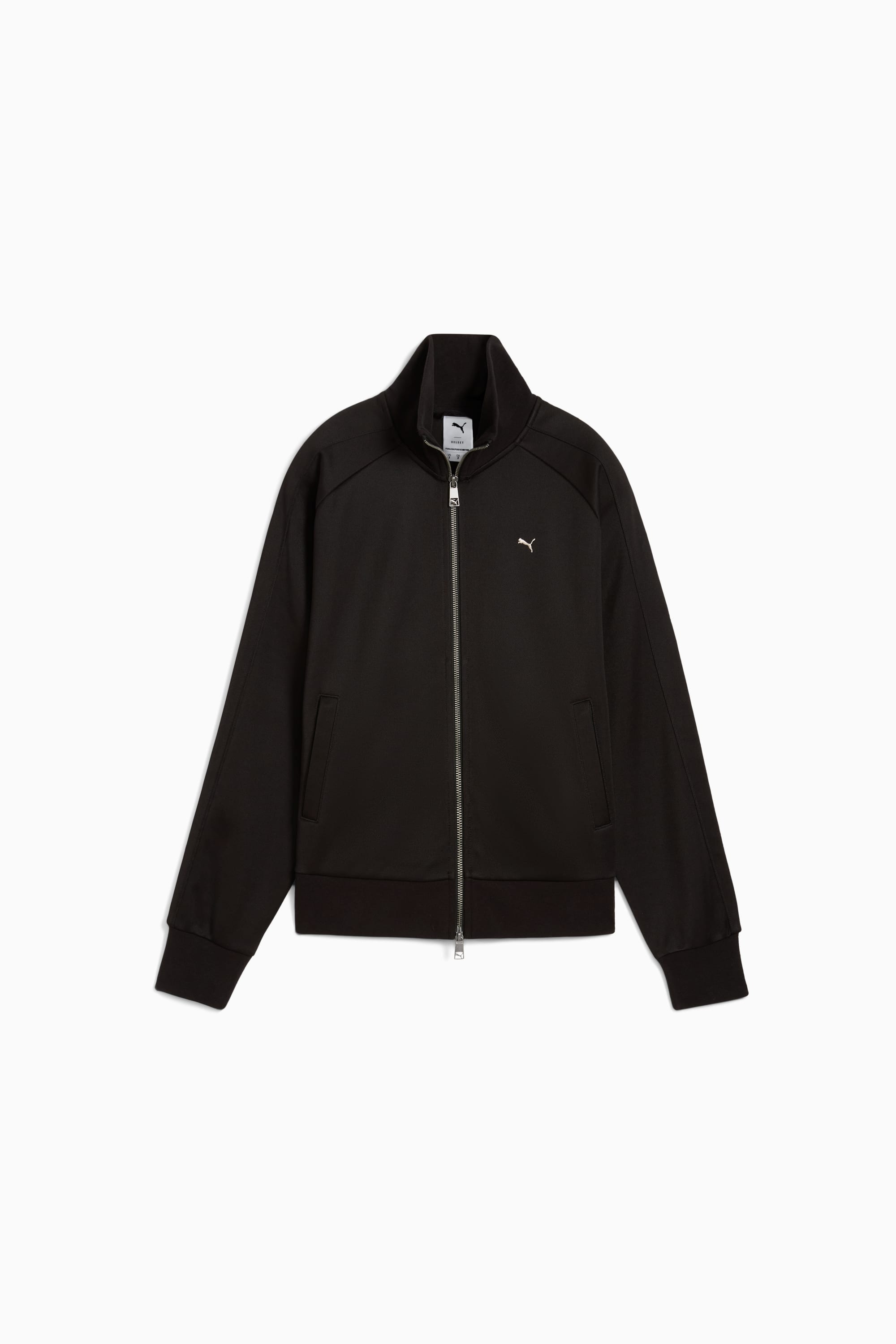 PRODUCT STORY A PUMA original, the T7 track-inspired collection made a name for itself with its signature 7cm stripes and quickly became as popular on city streets as it was on training grounds. Now the classic has been reborn with a contemporary new look. This refined T7 Track Jacket has a relaxed fit, embroidered details and a ribbed collar, cuffs and hem. FEATURES & BENEFITS - Made with at least 30% recycled materials DETAILS - Style: 629937_01 - Color: PUMA Black - Relaxed fit - Spacer fabric - Regular length - Stand-up collar - 2-way metal full-zip closure - Long sleeves - Ribbed collar, cuffs and hem - Side zip pockets - PUMA branding details MATERIAL INFORMATION - SHELL: 62% cotton, 38% polyester - COLLAR: 96% cotton, 4% elastane - BOTTOM HEM: 96% cotton, 4% elastane - POCKET BAG: 100% cotton - RIB: 96% cotton, 4% elastane - SLEEVE CUFF: 96% cotton, 4% elastane
