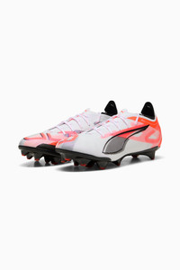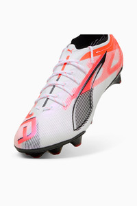 PRODUCT STORY How fast is the ULTRA 5 CARBON? Fasten your seatbelt, we mean laces, and unleash your speed with PUMA's latest soccer cleats, engineered for women. Featuring the SPEEDSYSTEM CARBON outsole for rapid propulsion, FastTrax studs for superior traction, and GripControl Pro skin for ball command. Lightweight, stable, and ready to dominate the pitch. FEATURES & BENEFITS - Made with at least 30% recycled materials - ACCELERATION: PUMA's SPEEDSYSTEM CARBON outsole combines springy carbon-fiber material for rapid propulsion with an innovative stud placement and orientation for faster acceleration. - PWRTAPE SQD: support frame stabilizes the foot inside of the boot without hindering agility and freedom of movement - TRACTION: FastTrax stud design uses insights from academic research and traction studies to provide more traction while accelerating, cutting and breaking DETAILS - Style: 108158_01 - Color: PUMA White-PUMA Black-Glowing Red - Engineered with a women's-specific fit for enhanced comfort and stability - SPEEDSYSTEM CARBON outsole provides rapid propulsion and acceleration - FastTrax stud design delivers superior traction for cutting and braking - FG: Suitable for use on firm ground - GripControl Pro skin for decisive command over the ball MATERIAL INFORMATION - Sockliner: 100% Synthetic - Outsole: 100% Synthetic - Upper: 88.20% Synthetic, 11.80% Textile - Lining: 62.15% Textile, 37.85% Synthetic