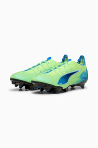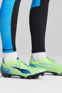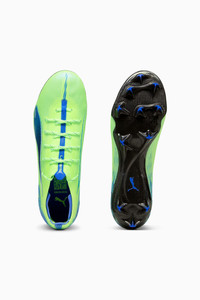 PRODUCT STORY Fasten your seatb. . .we mean laces. With ULTRA 5 CARBON, you get the speed and sensation of a finely tuned machine at your feet. Based on engineering insights from PUMA Motorsport, the brand-new SPEEDSYSTEM CARBON outsole is made of carbon fiber, which makes it 32% springier than the non-carbon version. PUMA’s FastTrax stud design is precision-engineered to take you from kick-off to back-of-the-net faster than you can say: lights out. FEATURES & BENEFITS - ACCELERATION: SPEEDSYSTEM carbon outsole combining springy carbon-fibre material for rapid propulsion with an innovative stud placement and orientation for faster acceleration - TRACTION: FastTrax stud design using insights from academic research and traction studies to provide more traction while accelerating, cutting and breaking - STABILITY: PWRTAPE SQD support frame stabilizes the foot inside the boot without hindering agility or freedom of movement - The upper of this shoe is made with at least 30% recycled materials DETAILS - Style: 107690_03 - Color: Fizzy Apple-PUMA White-Bluemazing - Lightweight mesh upper - Ultra-lightweight removable sockliner - OrthoLite® heel cushioning for a secure lockdown - GripControl Pro skin: Super-thin textured skin designed for improved ball control no matter the pitch conditions - SPEEDSYSTEM carbon outsole - Women's Fit: This soccer cleat is made for women, with measurements such as volume and instep height engineered for the female foot - Low-cut slip-on construction - FG: Suitable for use on firm ground MATERIAL INFORMATION - Sockliner: 100% Textile - Outsole: 100% Synthetic - Upper: 88.20% Synthetic, 11.80% Textile - Lining: 62.15% Textile, 37.85% Synthetic