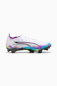 PRODUCT STORY Built for speed – and built for you. Leave one-size-fits-all boots in the dust with an ULTRA engineered specifically for women. The streamlined silhouette is informed by insights from female footballers to fit like a second skin as you blaze past the opposition. Back with an updated, engineered mesh upper for lethal finishing, it's a football boot that feels and plays like a finely tuned machine at your feet. Nothing extra. Everything ULTRA. FEATURES & BENEFITS - *FASTER, FOR HER: This football boot is made for women, with measurements such as volume and instep height engineered for the female foot - ACCELERATION: Made of carbon fiber, SPEEDSYSTEM CARBON outsole combines an extra springy plate with an innovative stud system for lightning-fast acceleration - STABILITY: PWRTAPE support frame stabilizes the foot inside of the boot without hindering agility and freedom of movement - The upper of the shoes is made with at least 30% recycled materials. DETAILS - Style: 108771_01 - Color: PUMA White-Fizzy Apple-Bright Aqua-Pure Magenta - Width: Regular - Fastener: Laces - Reengineered mesh upper with 3D textures in the key striking areas adds the grip you need for lethal finishing at top speed - Heel type: Flat - Lining: Textile - Ultra-lightweight removable sockliner - Surface: Firm Ground - Sprint, cut, and brake faster with FastTrax stud design for multidirectional traction MATERIAL INFORMATION - Sockliner: 100% Textile - Outsole: 100% Synthetic - Upper: 88.59% Synthetic, 11.41% Textile - Lining: 65.34% Textile, 34.66% Synthetic