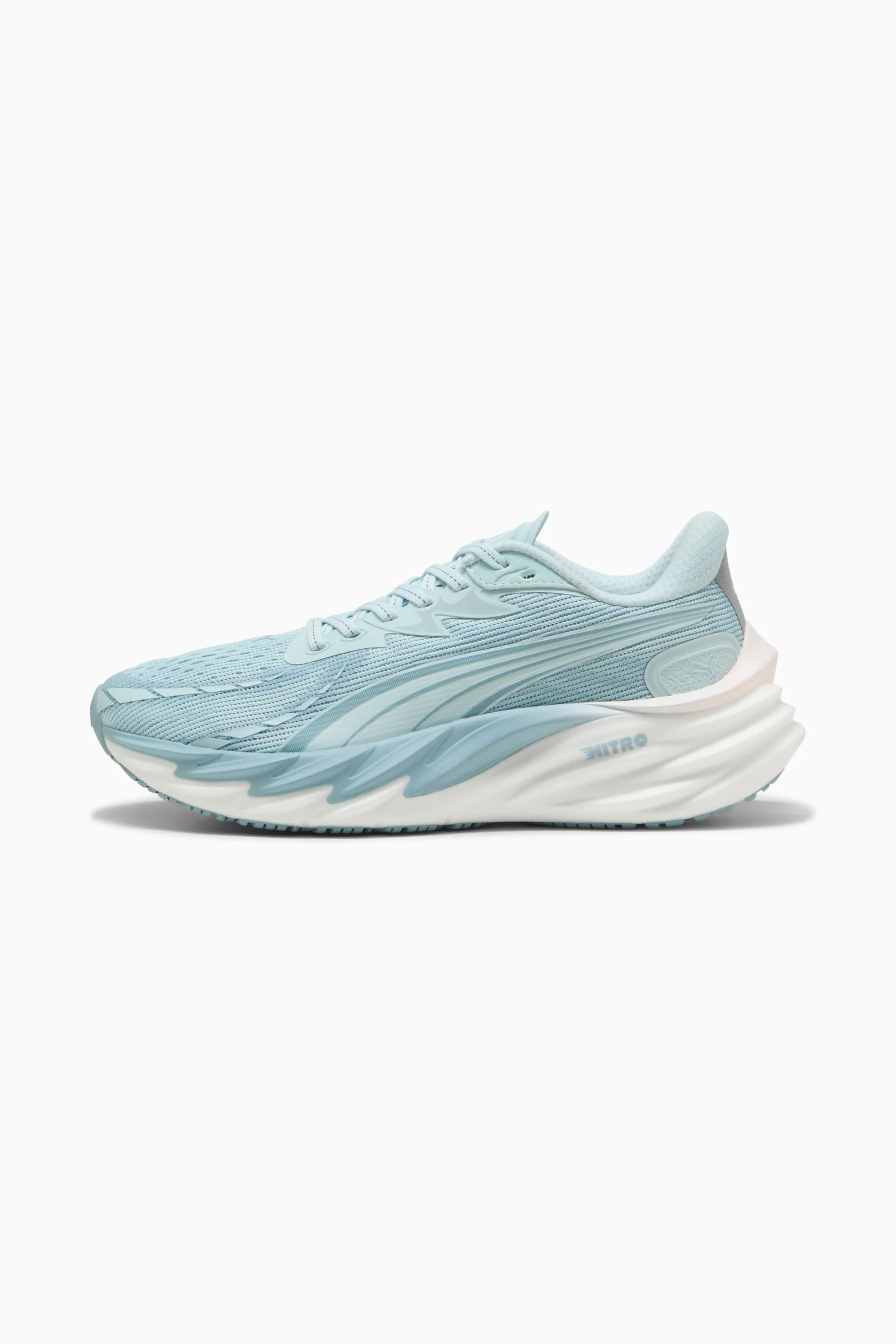 PRODUCT STORY Running feels different for everyone – and that's exactly how it should be. Whether you're chasing a personal record or just chasing the feeling, Velocity 4 is built to move with you. Any runner, any time, any distance, it can withstand, deliver, and exceed expectations. Our lightest Velocity yet, it features a full-length NITROFOAM™ midsole, improved breathability thanks to new mesh on the upper, and a PUMAGRIP outsole for the best traction in the game. FEATURES & BENEFITS - BREATHABILITY: Premium engineered knit material engineered for breathability and stretch, reinforced with PWRTAPE for durability and lockdown - NITROFOAM™: Innovative nitrogen-infused foam technology that uses premium raw materials to provide maximum energy return - PUMAGRIP: Outsole is made of durable rubber compound for multi-surface traction - The upper of the shoes is made with at least 30% recycled materials. DETAILS - Style: 311141_16 - Color: Fresh Water-PUMA White - Fit: Regular - Toe type: Rounded - Fastener: Laces - Heel type: Flat - Heel-to-toe drop: 10mm - Stack height 36mm / 26mm - Recommended for: neutral pronators MATERIAL INFORMATION - Sockliner: 100% Textile - Outsole: 100% Rubber - Upper: 59.73% Textile, 37.40% Synthetic, 2.87% Leather - cow - Lining: 100% Textile
