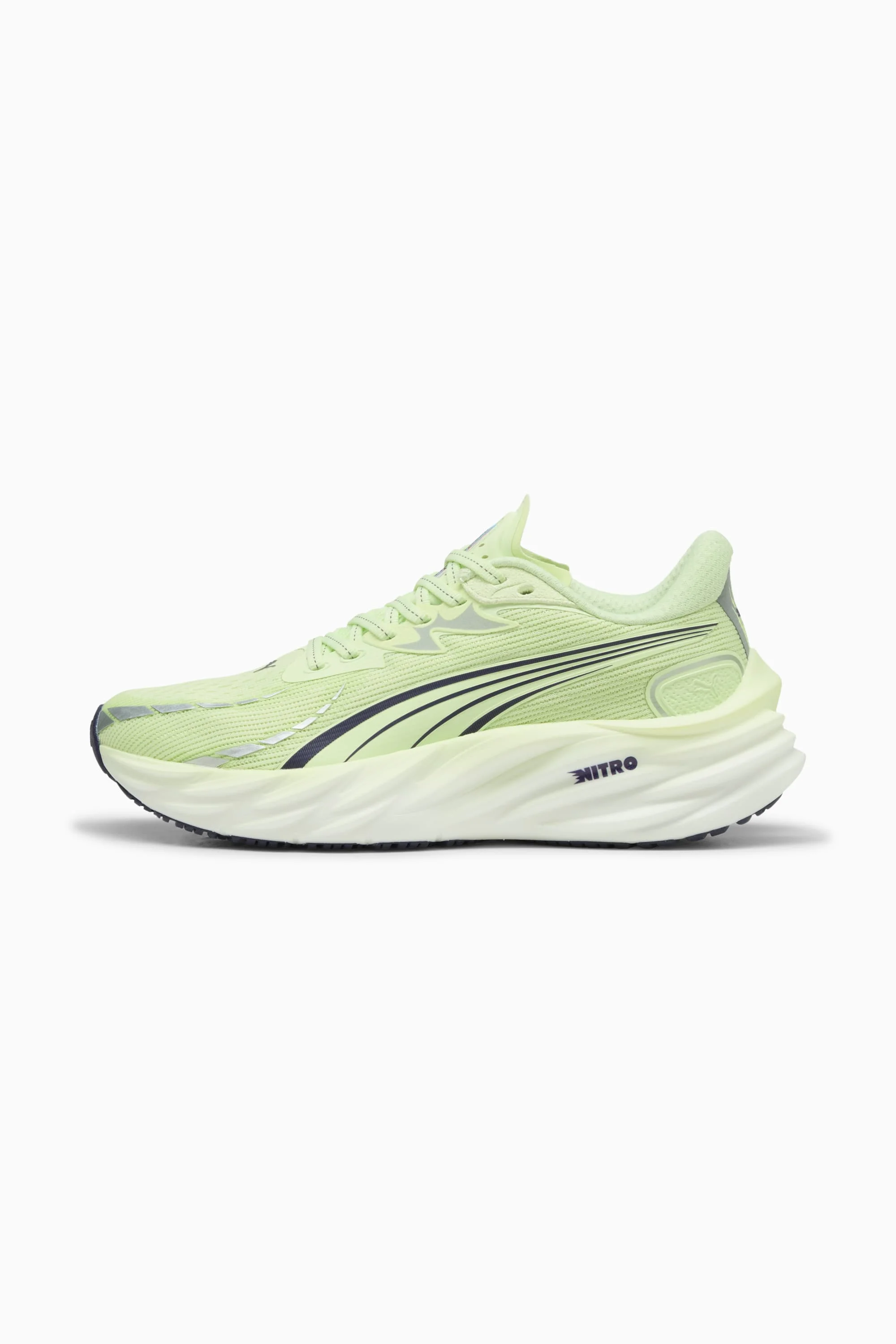 PRODUCT STORY Running feels different for everyone – and that's exactly how it should be. Whether you're chasing a personal record or just chasing the feeling, Velocity 4 is built to move with you. Any runner, any time, any distance, it can withstand, deliver, and exceed expectations. Our lightest Velocity yet, it features a full-length NITROFOAM™ midsole, improved breathability thanks to new mesh on the upper, and a PUMAGRIP outsole for the best traction in the game. FEATURES & BENEFITS - BREATHABILITY: Premium engineered knit material engineered for breathability and stretch, reinforced with PWRTAPE for durability and lockdown - NITROFOAM™: Innovative nitrogen-infused foam technology that uses premium raw materials to provide maximum energy return - PUMAGRIP: Outsole is made of durable rubber compound for multi-surface traction - The upper of the shoes is made with at least 30% recycled materials. DETAILS - Style: 311141_13 - Color: Apple Spritz-Deep Plum - Fit: Regular - Toe type: Rounded - Fastener: Laces - Heel type: Flat - Heel-to-toe drop: 10mm - Stack height 36mm / 26mm - Recommended for: neutral pronators MATERIAL INFORMATION - Sockliner: 100% Textile - Outsole: 100% Rubber - Upper: 59.73% Textile, 37.40% Synthetic, 2.87% Leather - cow - Lining: 100% Textile