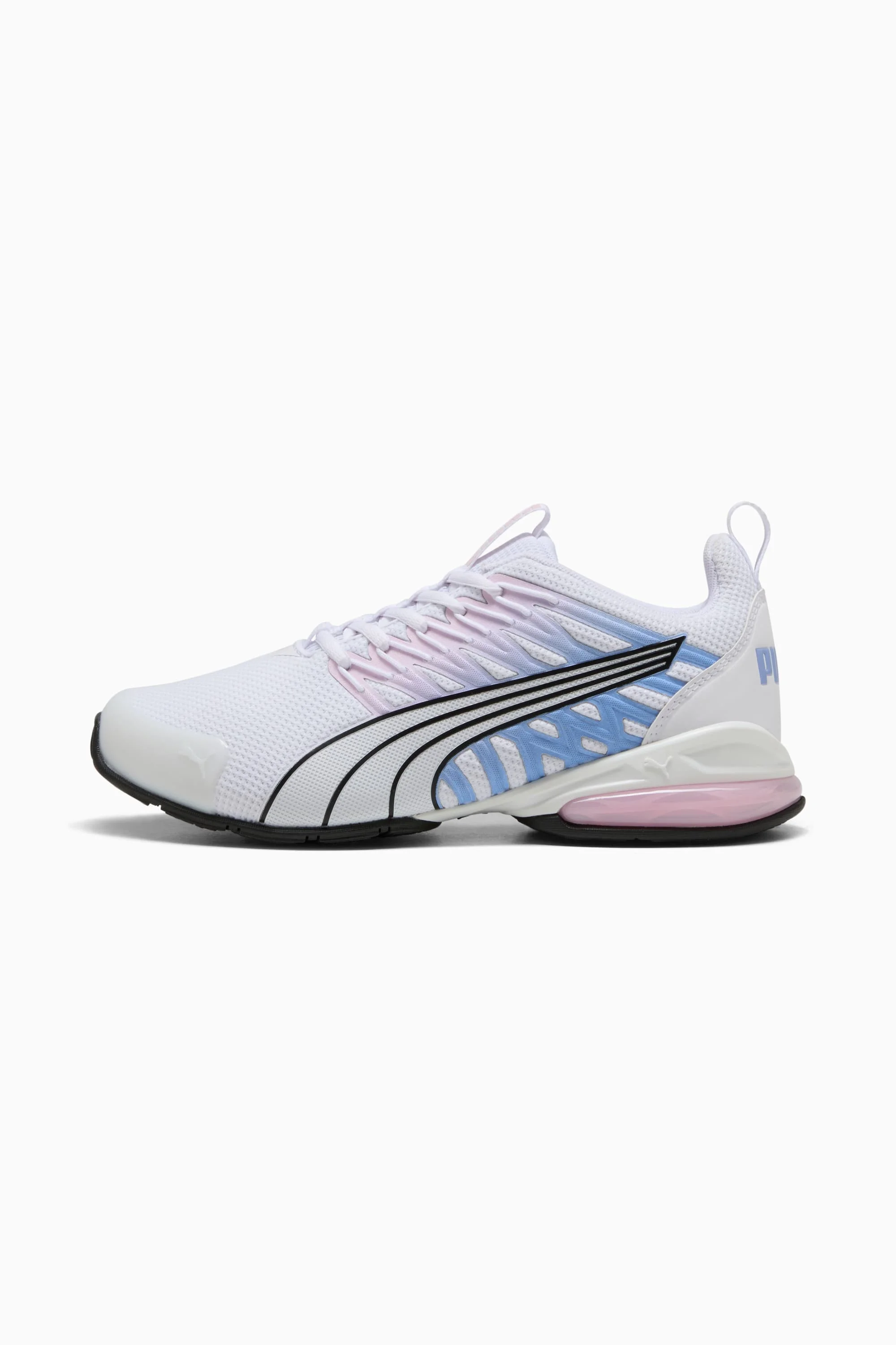 PRODUCT STORY The all-new Voltaic Evo is designed for the trainer who wants comfort and traction without sacrificing style. The Voltaic features a midsole with PUMA's 10 Cell technology and an outsole designed with full length rubber coverage. It's time to get moving. FEATURES & BENEFITS - SOFTFOAM+: Step-in comfort sockliner designed to provide soft cushioning thanks to its extra thick heel DETAILS - Style: 309720_34 - Color: PUMA White-PUMA Black-Pearl Pink-Intense Lavender - Outsole: Full length rubber - Midsole: 10 cell and TPU shank - Upper: Textured materials and premium material mix. - Closure: laces - Rounded toe - TPU toe cap provides style and durability - Cage overlay detail MATERIAL INFORMATION - Midsole: 100% Synthetic - Sockliner: 100% Textile - Outsole: 100% Rubber - Upper: 66.20% Synthetic, 33.80% Textile - Lining: 100% Textile