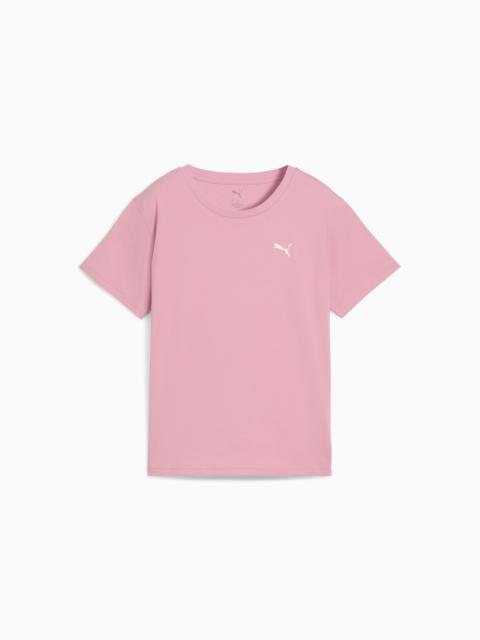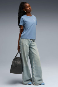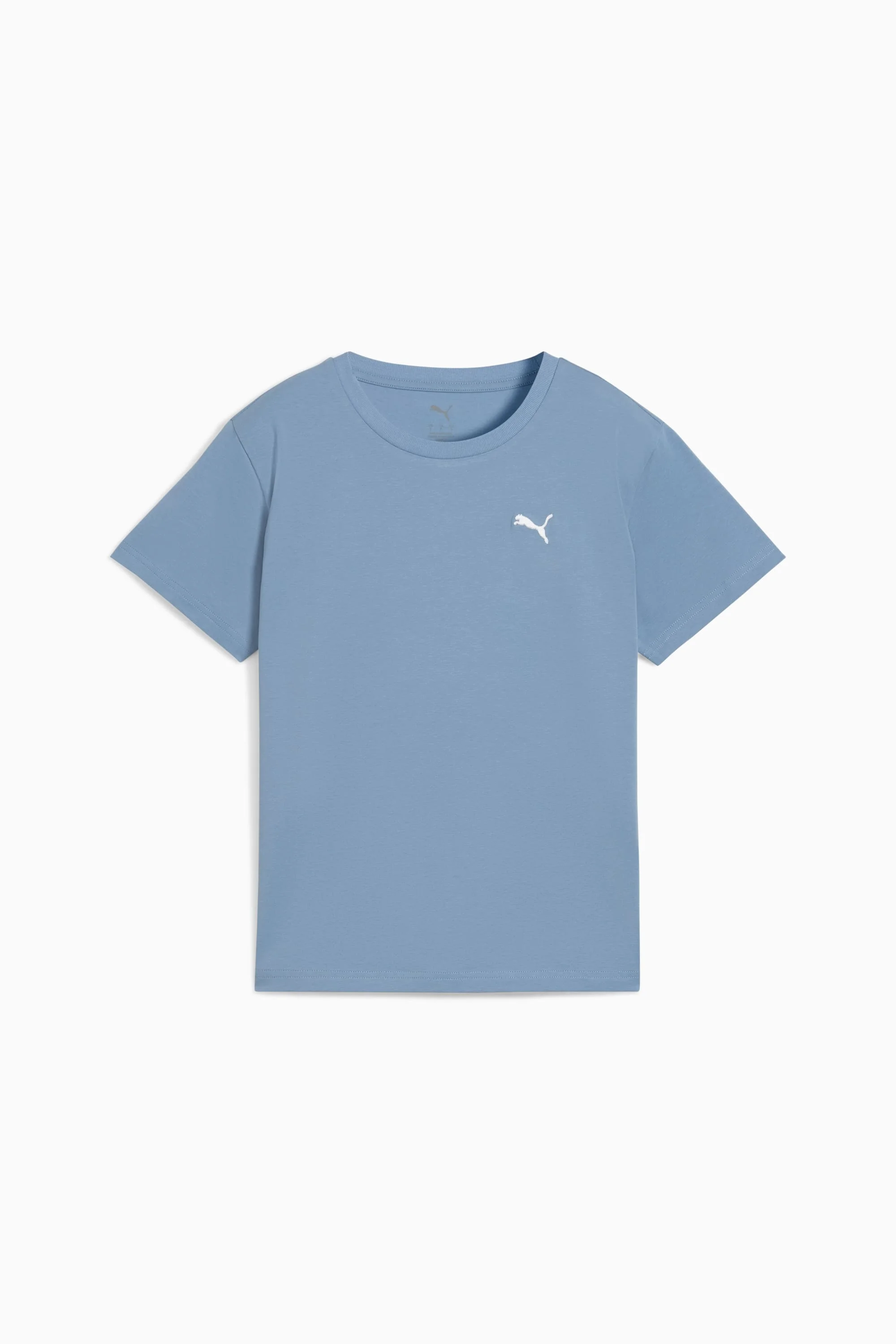 PRODUCT STORY Make mornings simple with PUMA's Wardrobe Essentials. These are your go-tos for busy days. Combining retro vibes with a modern edge, these versatile pieces will keep you comfortable and looking great, no matter where the day takes you. DETAILS - Style: 632043_34 - Color: Cool Blue - Fit: Comfortable straight fit - Main material: Single jersey - Neck: Crew neck - Ribbed neckline - Short sleeves - Length: Regular MATERIAL INFORMATION - Shell: 95% cotton, 5% elastane - Rib: 80% cotton, 20% polyester