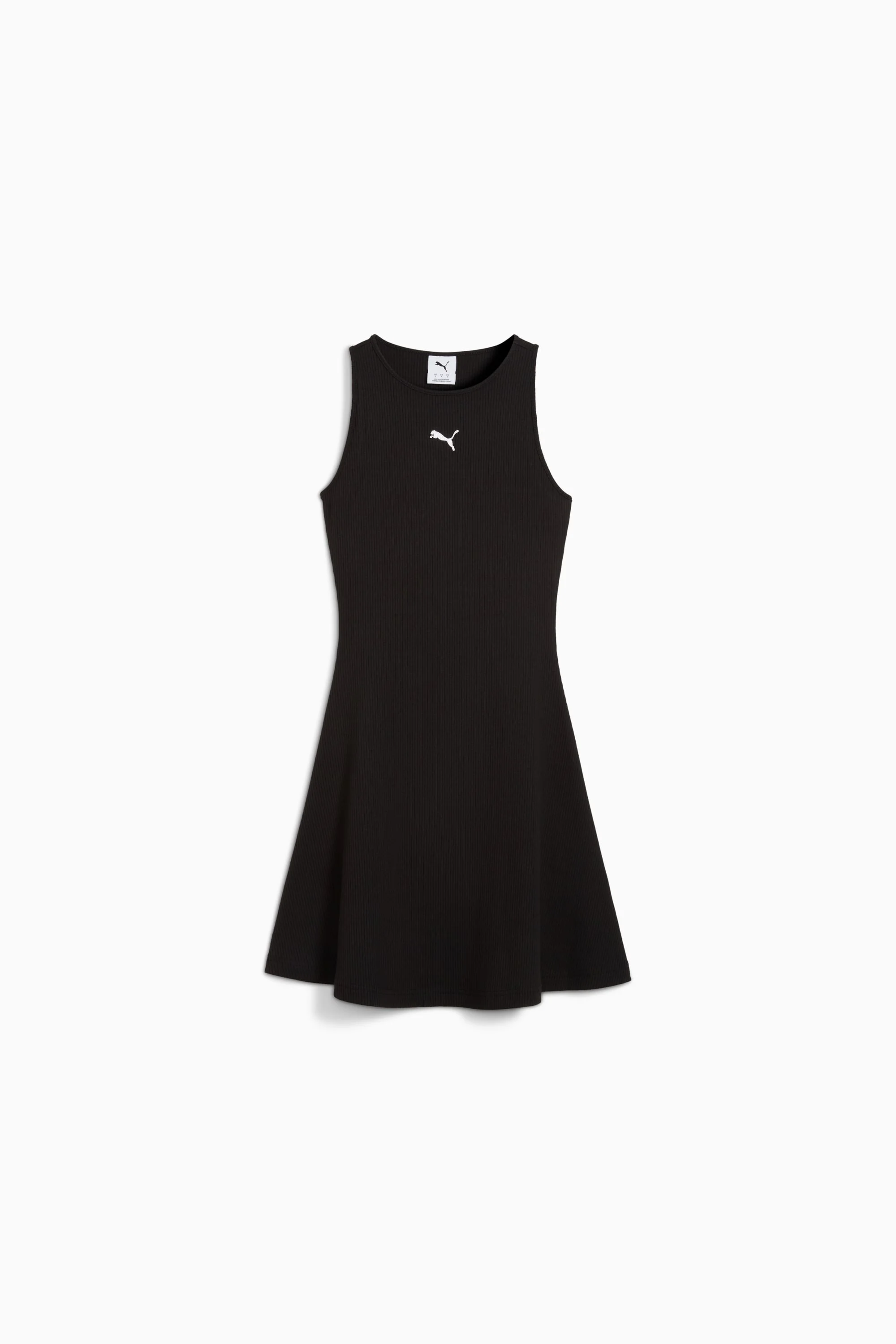 PRODUCT STORY Make mornings simple with PUMA's Wardrobe Essentials. These are your go-to pieces for busy days. Combining retro vibes with a modern edge, these versatile styles will keep you comfortable and looking great, no matter where your day takes you. FEATURES & BENEFITS - Made with at least 30% recycled materials. DETAILS - Style: 632049_01 - Color: PUMA Black - Fit: Slim - Main material: Rib - Sleeveless - Fitted waist - Length: Short - A-line cut