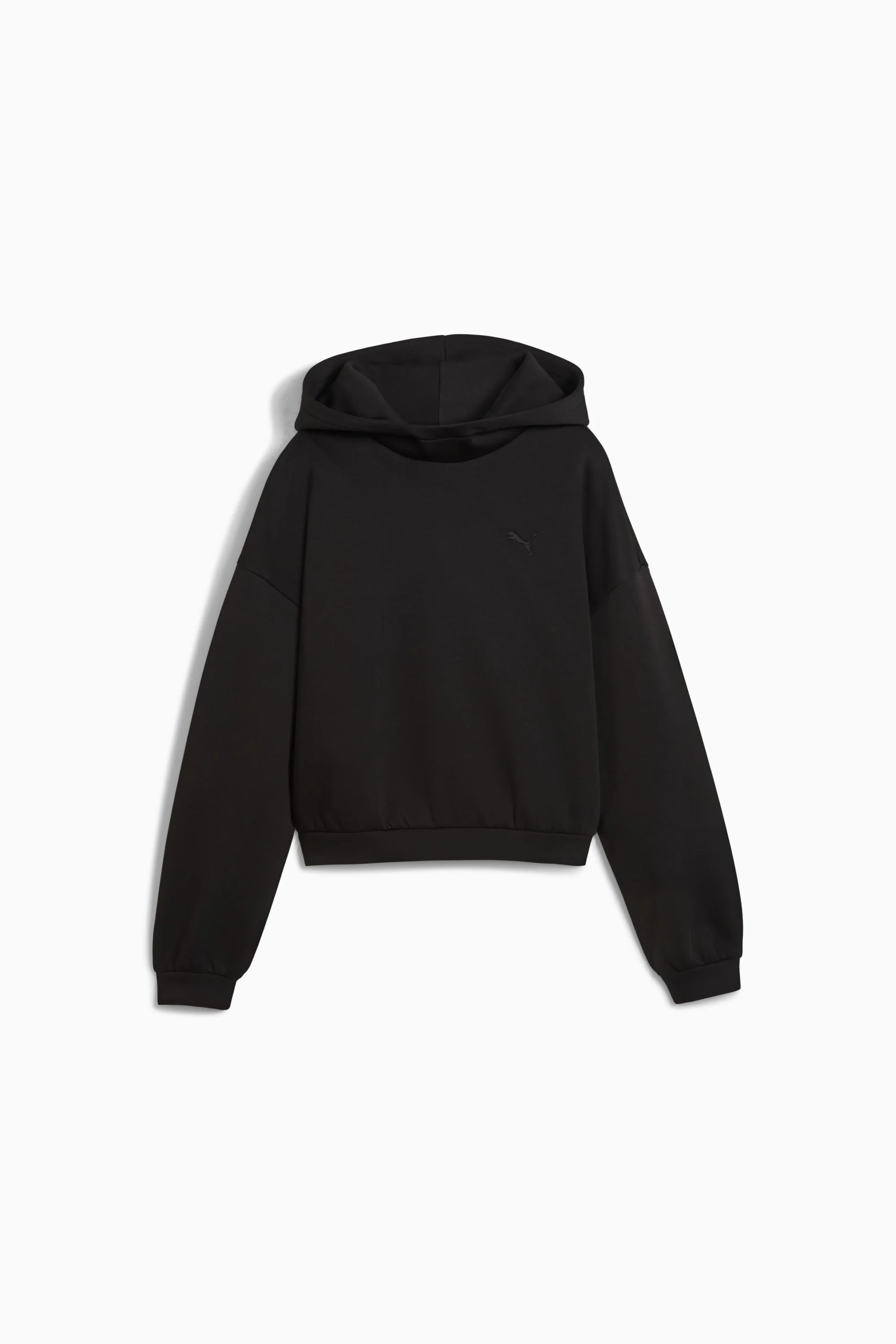 PRODUCT STORY Make mornings simple with PUMA's Wardrobe Essentials. These are your go-to pieces for busy days. Combining retro vibes with a modern edge, these versatile items will keep you comfortable and looking great, no matter where your day takes you. FEATURES & BENEFITS - Made with at least 20% recycled materials. DETAILS - Style: 632051_01 - Color: PUMA Black - Fit: Oversized - Main material: Spacer - Hooded - Long sleeves - Length: Short - Pockets: Kangaroo Pocket MATERIAL INFORMATION - Shell: 77% cotton, 23% polyester