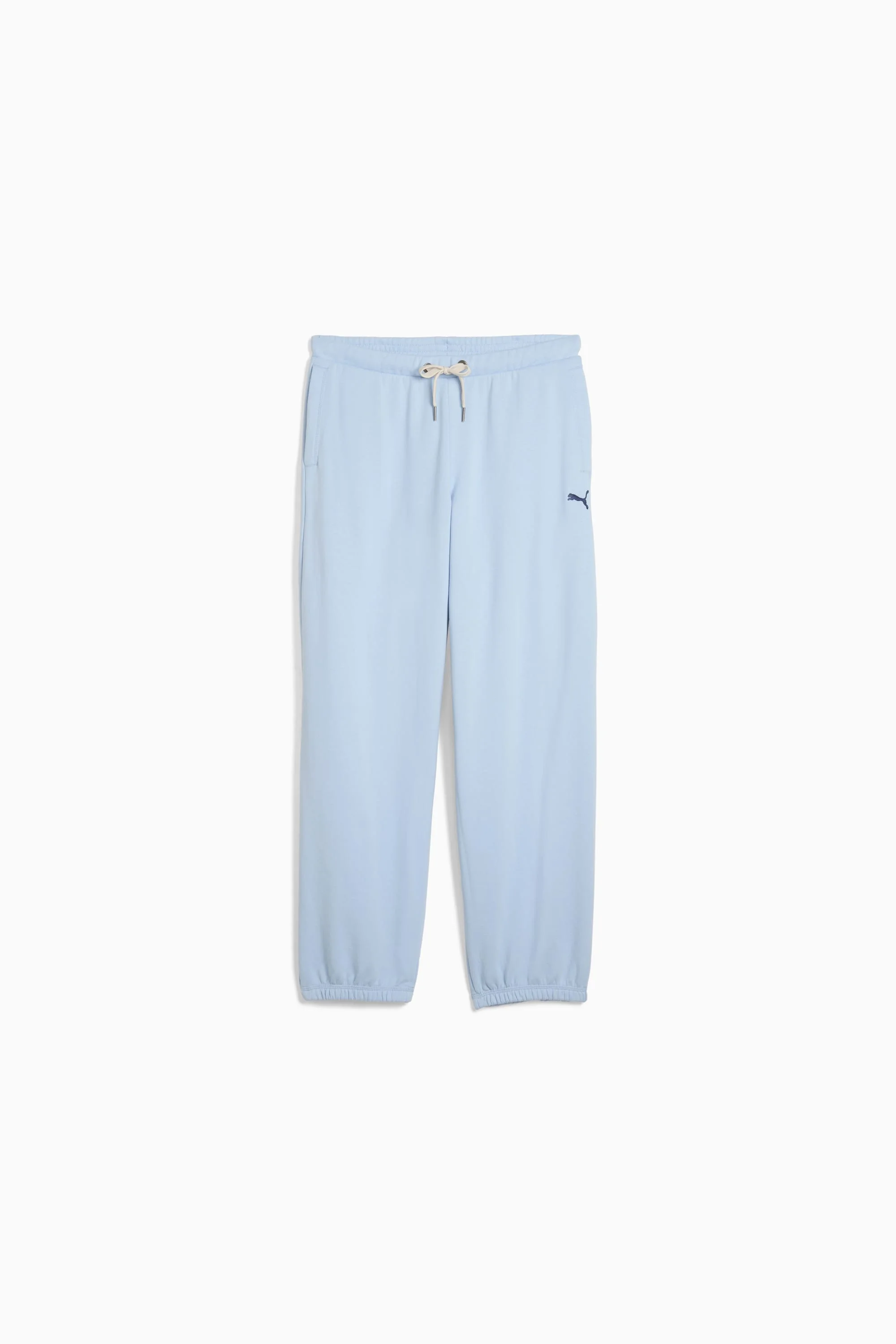 PRODUCT STORY Kick back in soft French terry with a relaxed fit that's perfect for laid-back vibes. Ribbed cuffs and an adjustable waistband add comfort, while subtle PUMA branding keeps it timeless. Whether you're lounging or running errands, these sweatpants bring effortless cool to your everyday. FEATURES & BENEFITS - Made with at least 20% recycled materials DETAILS - Style: 633904_48 - Color: Haute Tropic - Fit: Relaxed - Main Material: French Terry - Rise: Low MATERIAL INFORMATION - Upper Pocket Bag: 100% cotton - Shell: 100% cotton