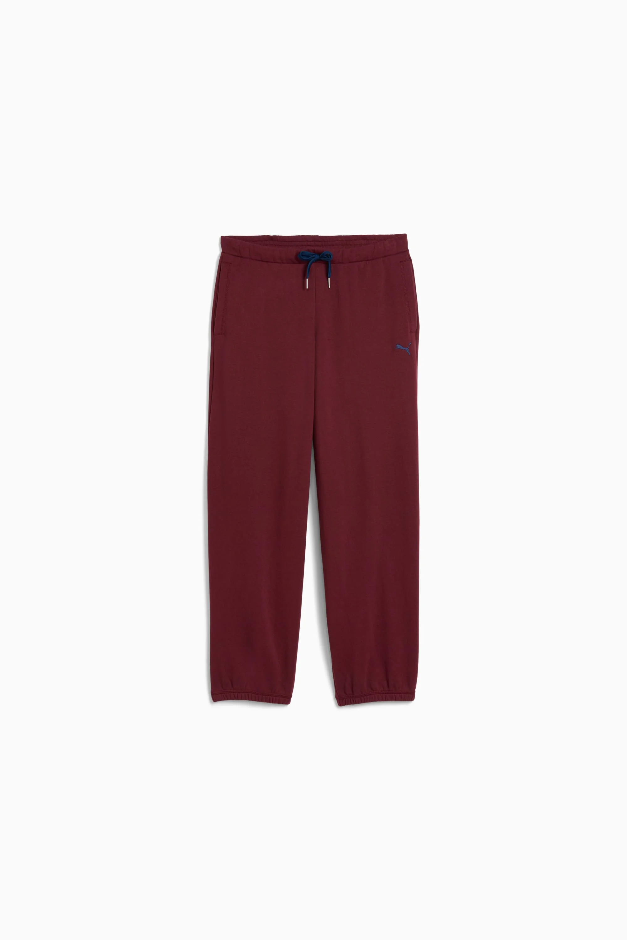 PRODUCT STORY Kick back in soft French terry with a relaxed fit that's perfect for laid-back vibes. Ribbed cuffs and an adjustable waistband add comfort, while subtle PUMA branding keeps it timeless. Whether you're lounging or running errands, these sweatpants bring effortless cool to your everyday. FEATURES & BENEFITS - Made with at least 20% recycled materials DETAILS - Style: 633904_96 - Color: Ruby Shimmer - Fit: Relaxed - Main Material: French Terry - Rise: Low MATERIAL INFORMATION - Upper Pocket Bag: 100% cotton - Shell: 100% cotton