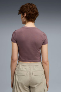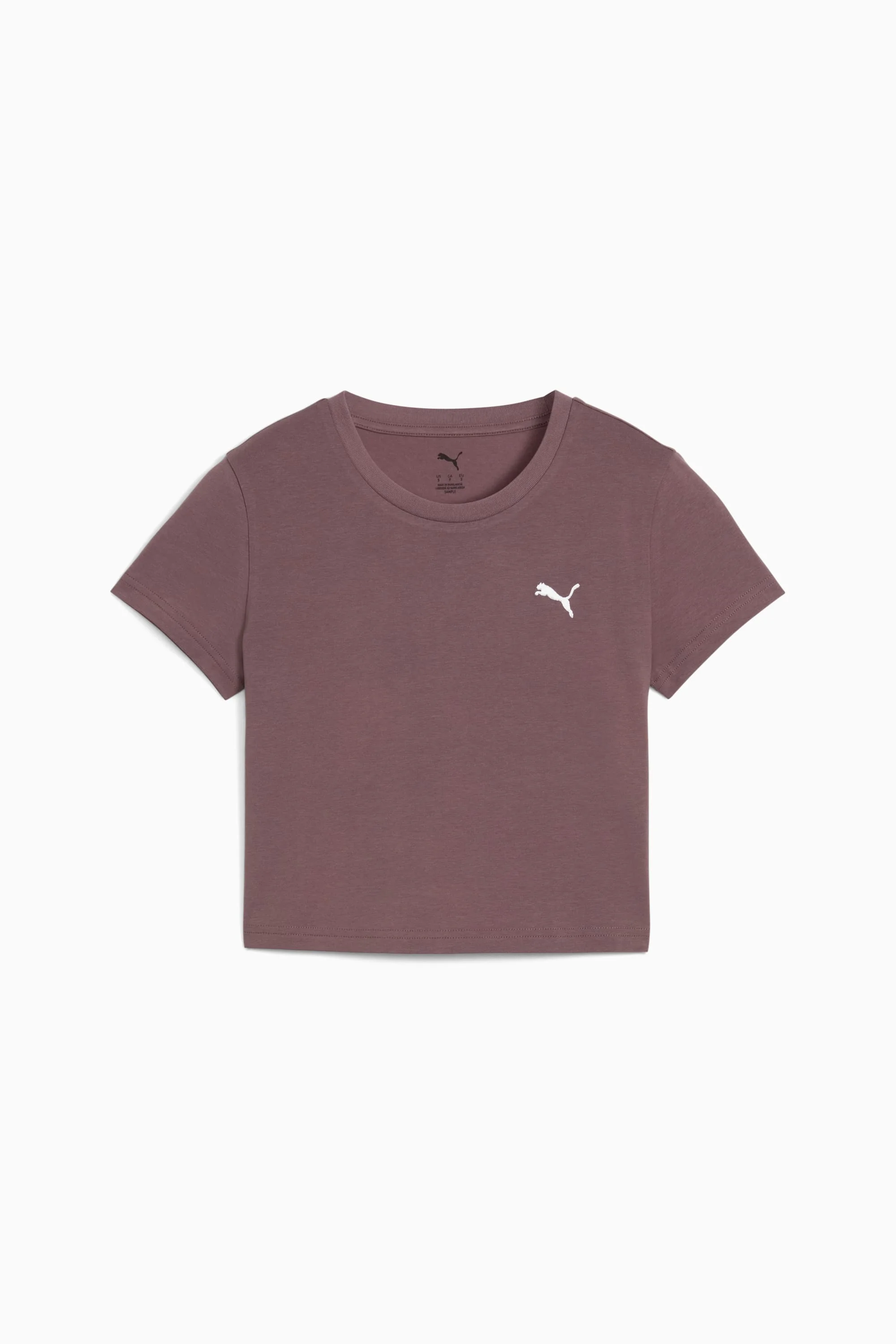 PRODUCT STORY Step up your casual game with this baby tee. With subtle details, it's perfect for those who love to keep it simple yet striking. Own your style with PUMA and make every day unforgettable. DETAILS - Style: 629745_88 - Color: Raisin - Slim fit - Single jersey fabric - Cropped length - Crew neck - Short sleeves - PUMA branding details MATERIAL INFORMATION - Shell: 95% cotton, 5% elastane - Rib: 80% cotton, 20% polyester