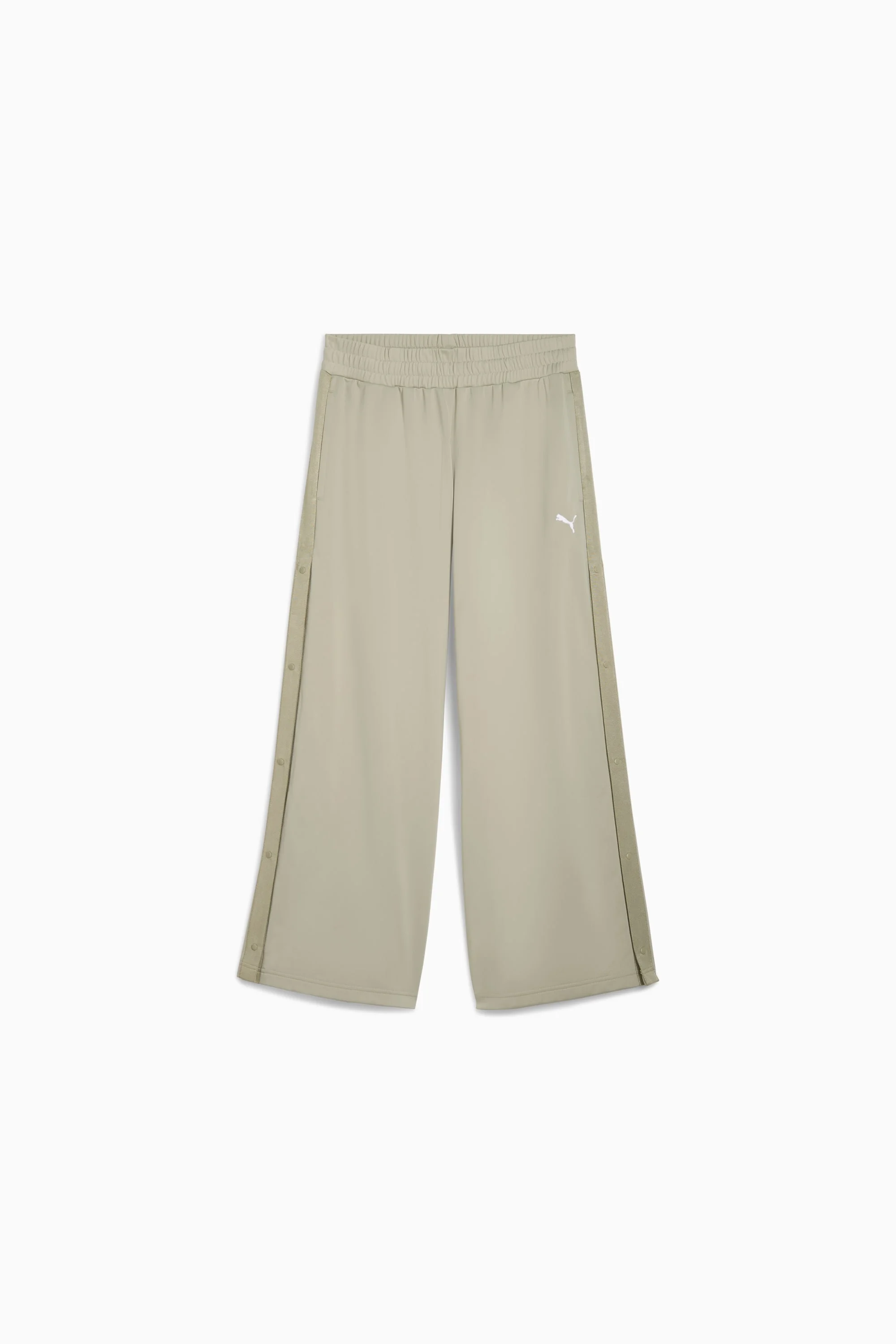 PRODUCT STORY Embrace effortless style with these PUMA low-rise popper pants. Featuring an elasticated waistband, tonal drawcords, and snap button tape for a fashionable edge, they're perfect for making a statement. Your new favorite for any casual outing. DETAILS - Style: 629804_82 - Color: Lux Army - Relaxed fit - Tricot fabric - Regular length - Tape with snap buttons - PUMA branding details MATERIAL INFORMATION - Shell: 100% polyester