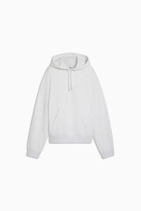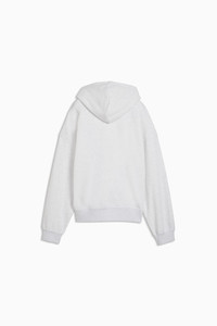 PRODUCT STORY Make mornings easy with Wardrobe Essentials. These are your go-tos for busy days. Pairing retro vibes with contemporary edge, these versatile pieces will keep you feeling comfortable and looking good, no matter where the day takes you. FEATURES & BENEFITS - Made with at least 50% recycled materials. DETAILS - Style: 636034_05 - Color: White Glow Heather - Fit: Oversized - Main material type: French Terry - Hooded - Long sleeves - Length: Short - Embroidered PUMA Cat logo MATERIAL INFORMATION - Shell: 68% cotton, 32% polyester - Rib: 96% cotton, 4% elastane