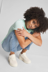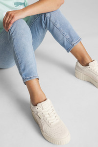 PRODUCT STORY These Cali Wedge trainers keep it simple to incredible effect. The understated design brings a few key details – some perforations here, a PUMA logo there – to the fore. These shoes let their titanic design do the talking, with a high wedge heel that's sure to catch the eye. Sleek style that stands up – plain and simple. FEATURES & BENEFITS - IMEVA: PUMA's material for a lightweight and comfortable feel DETAILS - Style: 385248_01 - Color: Pristine-Marshmallow - Full suede upper with perforations on vamp - Matt lycra lining - High wedge sole - IMEVA + rubber midsole - IMEVA + rubber outsole - Lace closure - PUMA Formstrip at lateral and medial sides - PUMA No. 2 Logo label at lateral side - PUMA Cat Logo on outsole and heel - PUMA Cat Wordmark on heel and tongue MATERIAL INFORMATION - Outsole: 100% TR (Thermoplastic Rubber) - Upper: 100% Leather - Lining: 100% Textile