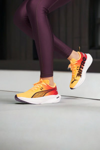 PRODUCT STORY Faster than ever, smoother than before, the Deviate 3 is a super-fast, explosive and ultra-responsive running shoe for training and racing. Built on the perfect combination of NITROFOAM™ - our innovative nitrogen infused foam offers maximum energy return - and PWRPLATE technology, the Deviate provides best in-class cushioning and responsiveness for a strong, snappy and comfortable ride at any pace for any runner. Optimized for a wide range of foot strikes and patterns and ready to propel you to your next PB. FEATURES & BENEFITS - The upper of the shoes is made with at least 20% recycled materials - NITROFOAM™: Advanced nitrogen-infused foam designed to provide superior responsiveness and cushioning in a lightweight package - PWRPLATE: Carbon fibre plate engineered to stabilise the midsole while maximising energy transfer DETAILS - Style: 310475_01 - Color: Sun Stream-Sunset Glow-PUMA White - Regular fit - Engineered mesh upper - Stack height: 39mm/29mm - Weight: 250g (size UK8) - Heel-to-toe drop: 10mm - Recommended for: neutral pronators