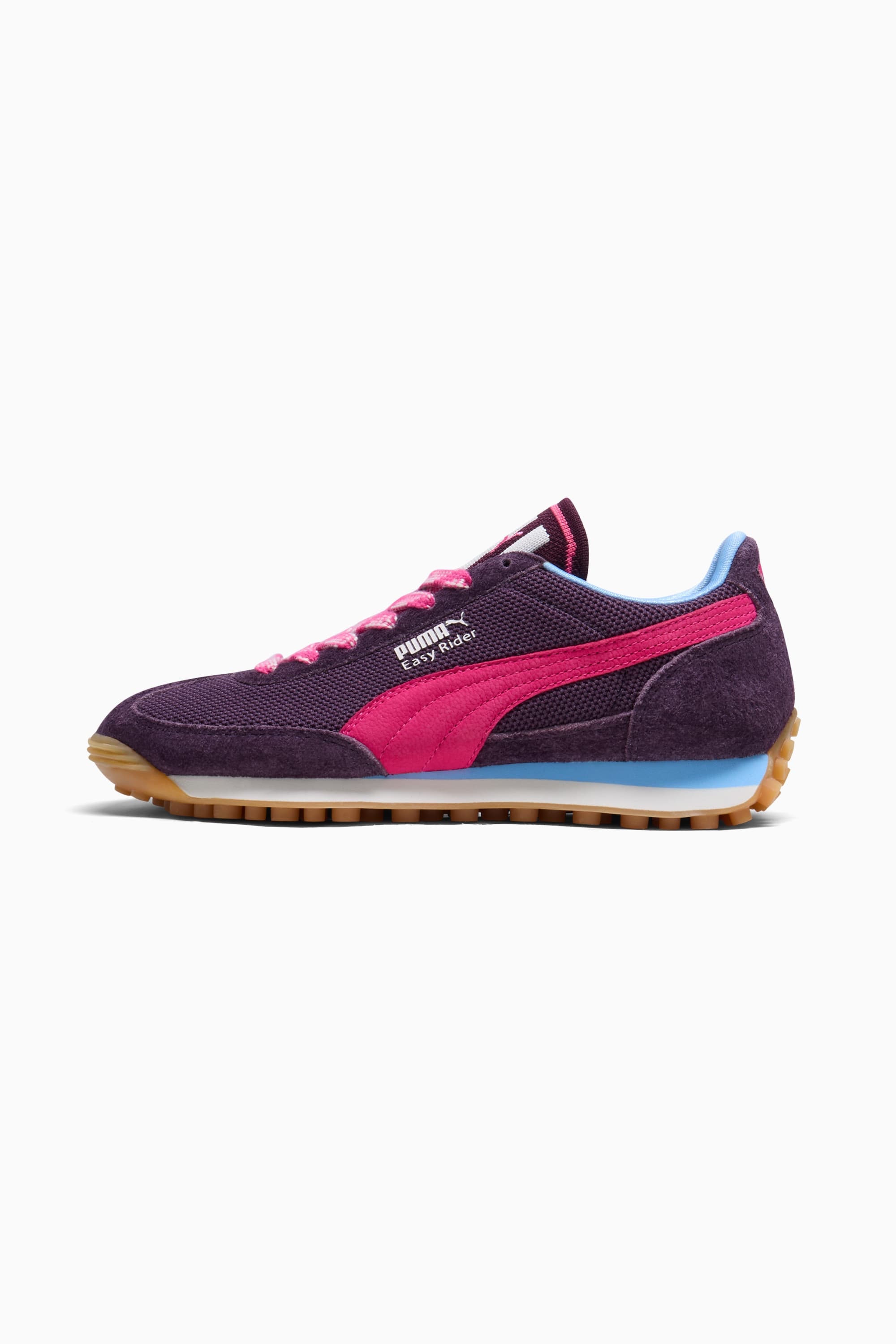 PRODUCT STORY The PUMA Easy Rider was born in the late ‘70s, when running made its move from the track to the streets. Today it's back with its classic slim profile and vintage vibes intact. This execution features a knitted base with hairy suede overlays. FEATURES & BENEFITS - PUMA’s leather products support responsible manufacturing via the Leather Working Group. www.leatherworkinggroup.com DETAILS - Style: 400774_01 - Color: Midnight Plum-PUMA Pink - Low boot - Lace closure - Knitted base - Hairy suede toe and heel overlays - Suede Leather Formstrip - Hairy suede quarter and medial overlays - EVA midsole - Rubber outsole - Regular fit MATERIAL INFORMATION - Midsole: 100% Rubber - Sockliner: 100% Textile - Outsole: 100% Rubber - Upper: 68.19% Leather - cow, 31.81% Textile - Lining: 100% Textile