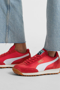 PRODUCT STORY The PUMA Easy Rider was born in the late ‘70s, when running made its move from the track to the streets. Today it's back with its classic slim profile and vintage vibes intact. This version, featuring a textile base and suede leather overlays, is sure to become your go-to for bringing a touch of easy, retro-style to everyday looks. DETAILS - Style: 400773_01 - Color: PUMA Red-PUMA White - Nylon base - Suede leather quarter and medial overlays - Suede leather toe and heel overlays - Suede leather eyestay - Textile tongue with woven PUMA branding label - Textile collar lining - Textile sockliner with foil printed PUMA branding - Synthetic leather FOT with debossed and foil printed PUMA Cat Logo - Foil printed PUMA and Easy Rider branding details - Synthetic leather PUMA Formstrip MATERIAL INFORMATION - Midsole: 100% Synthetic - Sockliner: 100% Textile - Outsole: 100% Rubber - Upper: 68% Leather - cow, 32% Textile - Lining: 100% Textile