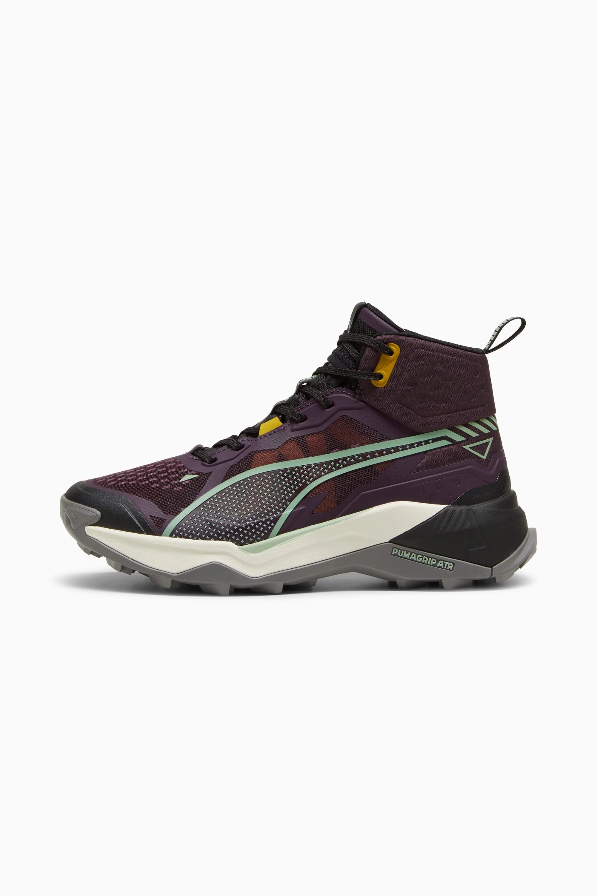 PRODUCT STORY Explore NITRO™ 2 Mid is engineered for challenging terrains. The NITROFOAM™ spans the length of the midsole, ensuring lasting comfort and cushioning, paired with PROFOAM for stability and durability. The outsole has full PUMAGRIP ATR rubber coverage for multi surface traction and protection. FEATURES & BENEFITS - The upper of the shoes is made with at least 30% recycled materials - NITROFOAM™: Advanced nitrogen-infused foam designed to provide superior responsiveness and cushioning in a lightweight package - PUMAGRIP ATR: Trail-ready performance rubber compound designed for traction on ice, mud, and unstable surfaces DETAILS - Style: 310085_03 - Color: Midnight Plum-Green Fog-PUMA Black - Regular fit - Mid-ankle height - Engineered mesh upper - PROFOAM EVA midsole foam - Stack height: 34mm/28mm - Heel-to-toe drop: 8mm - Recommended for: neutral pronators MATERIAL INFORMATION - Sockliner: 100% Textile - Outsole: 100% Rubber - Upper: 50.89% Synthetic, 49.11% Textile - Lining: 100% Textile