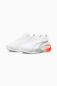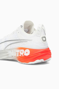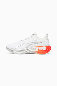 PRODUCT STORY The ForeverRUN NITRO™ for women dawns a new era of support and guidance for all runners, providing the softness of a full NITROFOAM™ midsole without compromising stability. It features a newly developed NITROFOAM™ midsole with two different densities – a softer core with a firmer rim – and an asymmetrical heel counter to hold the foot in place through every stride. The theme also continues on the outsole, with a wider medial rubber segment that stabilises late-stage pronation. In short, it's the perfect blend of support and cushion. FEATURES & BENEFITS - NITRO™: Advanced nitrogen-infused foam designed to provide superior responsiveness and cushioning in a lightweight package - PWRTAPE: Targeted upper reinforcement for support and durability - RUNGUIDE: Firm density guide rail designed to keep your foot aligned and centred through each stride - PUMAGRIP: Durable performance rubber compound designed for all-surface traction DETAILS - Style: 309758_01 - Color: PUMA White-Cherry Tomato - Engineered mesh upper - Moulded heel technology - Flared rubber outsole - Cushioning level: Max - Shoe pronation: Overpronation - Heel-to-toe drop: 10mm MATERIAL INFORMATION - Midsole: 100% Synthetic - Sockliner: 100% Textile - Outsole: 100% Rubber - Upper: 63% Textile, 37% Synthetic - Lining: 100% Textile