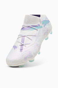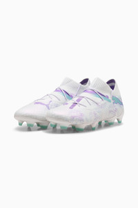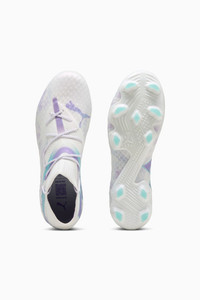 PRODUCT STORY Playmakers, lock into the FUTURE. These soccer cleats feature a re-engineered upper which combines PWRPRINT and PWRTAPE with extra stretchy knit and soft dual mesh for a next-generation adaptive fit. The Dynamic Motion System provides traction and agility for quick cuts and changes of pace. When you wear the FUTURE, you are the FUTURE. Go create. FEATURES & BENEFITS - FUZIONFIT360: combines engineered dual mesh, extra stretchy knit, PWRPRINT, and 2 layers of PWRTAPE for a snug, supportive fit and absolute freedom of movement - Dynamic Motion System: this super lightweight outsole is designed to provide freedom of movement and enhanced multidirectional traction thanks to its advanced stud configuration - PWRTAPE: Targeted upper reinforcement for support and durability - The upper of this shoe is made with at least 20% recycled materials DETAILS - Style: 108182_01 - Color: PUMA White-PUMA Black-Spring Lavender - FUZIONFIT360 upper with PWRPRINT and PWRTAPE: for freedom of movement and a snug, supportive fit - 3D grip textures at key contact zones for the ultimate touch and control - Lightweight removable sockliner with NanoGrip technology keeps the foot from slipping inside the boot - Micro-perforated heel padding keeps the heel locked in and comfortable - Dynamic Motion System outsole - Women's Fit: This soccer cleat is made for women, with measurements such as volume and instep height engineered for the female foot. Regular to wide fit - Mid-cut slip-on construction. Play with or without laces - FG/AG: Suitable for use on both firm natural surfaces and artificial grass (4G) MATERIAL INFORMATION - Sockliner: 100% Textile - Outsole: 100% Synthetic - Upper: 79.23% Synthetic, 20.77% Textile - Lining: 100% Synthetic