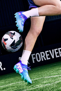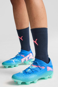 PRODUCT STORY Playmakers, lock into the FUTURE. These cleats feature a re-engineered upper which combines PWRPRINT and PWRTAPE with extra stretchy knit and soft dual mesh for a next-generation adaptive fit. The Dynamic Motion System provides traction and agility for quick cuts and changes of pace. When you wear the FUTURE, you are the FUTURE. Go create. FEATURES & BENEFITS - FUZIONFIT360: combines engineered dual mesh, extra stretchy knit, PWRPRINT, and 2 layers of PWRTAPE for a snug, supportive fit and absolute freedom of movement - PWRTAPE: Targeted upper reinforcement for support and durability - Dynamic Motion System: this super lightweight outsole is designed to provide freedom of movement and enhanced multidirectional traction thanks to its advanced stud configuration - The upper of this shoe is made with at least 20% recycled materials DETAILS - Style: 107917_01 - Color: Bluemazing-PUMA White-Electric Peppermint - FUZIONFIT360 upper with PWRPRINT and PWRTAPE: for freedom of movement and a snug, supportive fit - Lightweight removable sockliner with NanoGrip technology keeps the foot from slipping inside the boot - Micro-perforated heel padding keeps the heel locked in and comfortable - Dynamic Motion System outsole - Women's Fit: This football boot is made for women, with measurements such as volume and instep height engineered for the female foot - Can be worn with or without laces - FG/AG: Suitable for use on both firm natural surfaces and artificial grass (4G) MATERIAL INFORMATION - Sockliner: 100% Textile - Outsole: 100% Synthetic - Upper: 79.23% Synthetic, 20.77% Textile - Lining: 100% Synthetic