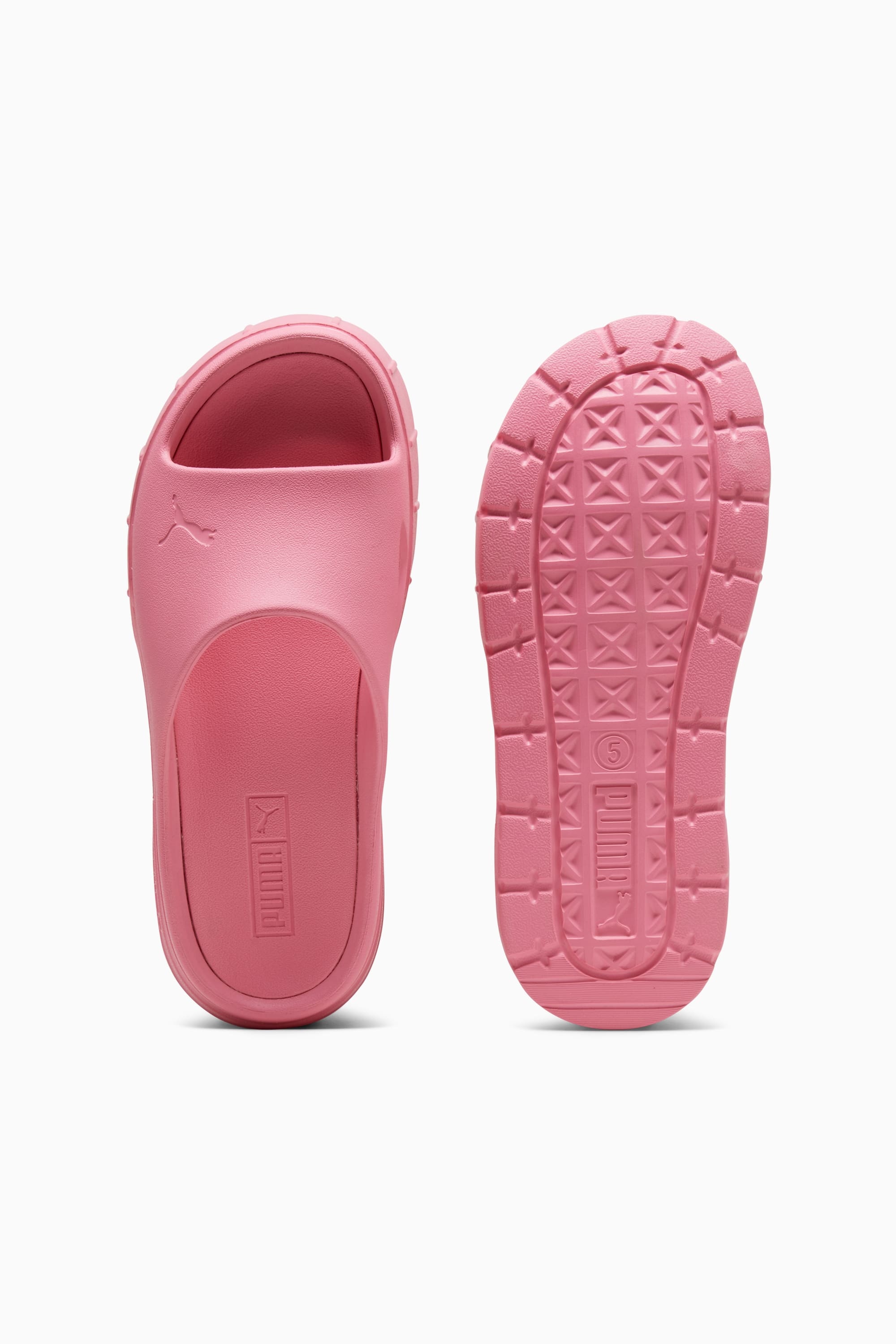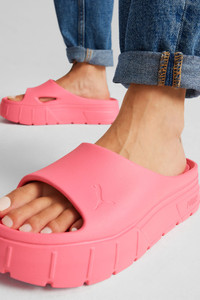 PRODUCT STORY You thought Mayze made enough of a statement? The Mayze Stack Injex sandal takes it to a whole new level, literally. It has a supersized sole and a single strap – both formed from the same piece of EVA foam. The ultimate in poolside style. DETAILS - Style: 389454_08 - Color: Fast Pink - Moulded EVA construction - EVA outsole - PUMA Cat Logo on the strap MATERIAL INFORMATION - Midsole: 100% Synthetic - Outsole: 100% Synthetic - Upper: 100% Synthetic