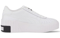 PRODUCT INFORMATION Model No: 373438-03 Closure: Lacing Release Date: 2020-06-30 Upper Material: Leather Colorway: White/Black Heel Type: Thick bottom Toe Type: Round Toe Sole Material: Rubber Sole Functionality: Slip-resistant/Lightweight Season: All Season Color: WHITE Series: Cali Nickname: White Occasion: skateboarding The PUMA Cali Wedge in white is a fresh take on the brand's iconic silhouette. The upper is crafted from synthetic leather and features perforated detailing on the toe box and metallic gold branding hits. The platform midsole is cushioned for comfort and the wedge heel is perfect for days when you want a little extra height.