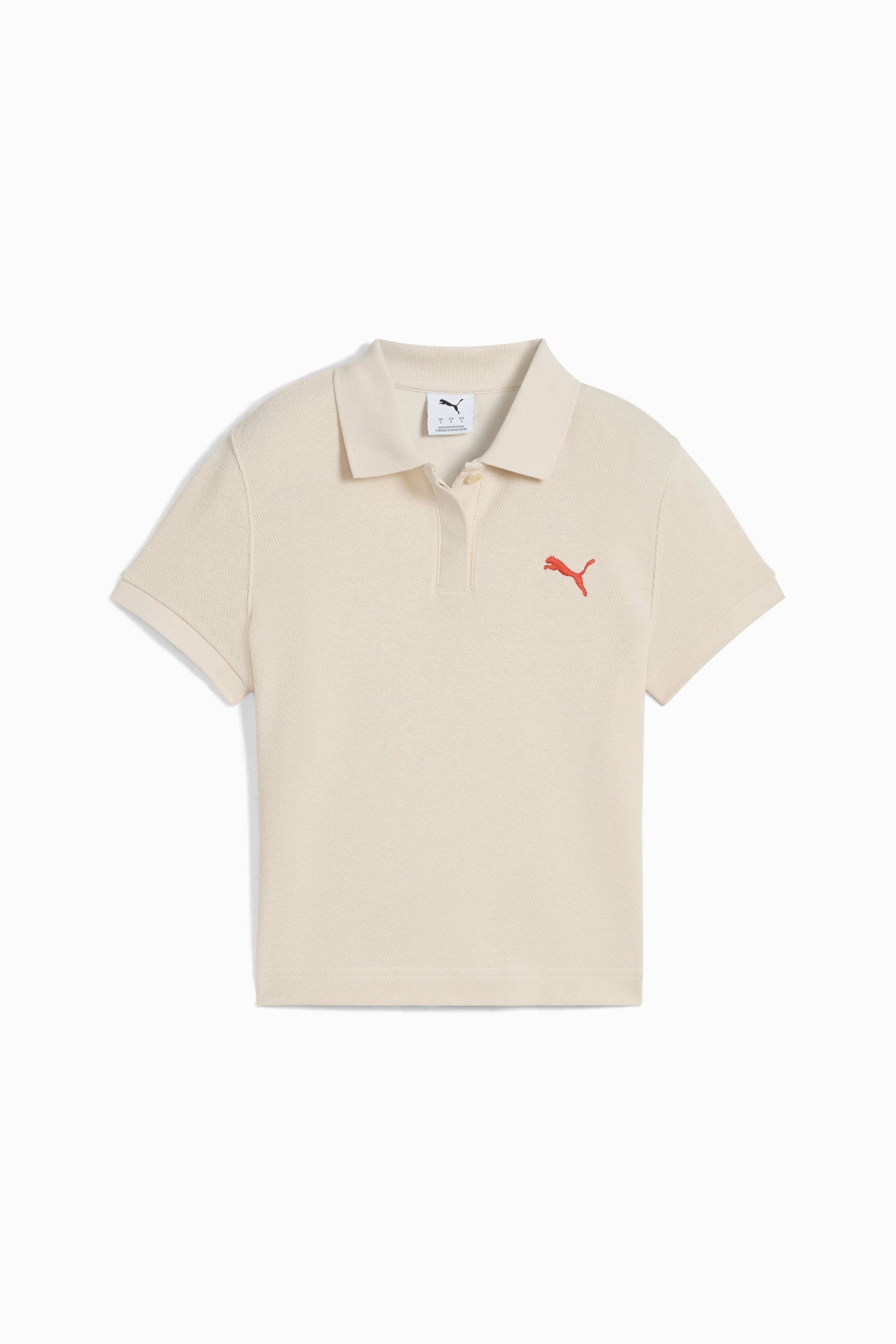 PRODUCT STORY Refresh your wardrobe with this PUMA polo featuring a ribbed polo neck, logo embroidery, and a graphic detail below the collar. The two-button closure and ribbed cuffs add a touch of sophistication to your everyday look. FEATURES & BENEFITS - Made with at least 50% recycled materials DETAILS - Style: 629777_87 - Color: Alpine Snow - Slim fit - Mesh fabric - Cropped length - Button placket - Short sleeves - PUMA branding details MATERIAL INFORMATION - SHELL: 65% polyester, 35% cotton - COLLAR: 62% polyester, 34% cotton, 4% elastane - SLEEVE CUFF: 62% polyester, 34% cotton, 4% elastane