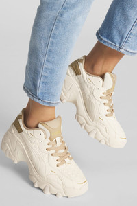 PRODUCT STORY Feel the power. Pulsar is here for ladies who have their fingers on the pulse of today’s trends and tomorrow’s potential. Its design is inspired by the queens of hip hop, from the early 2000s to today: their powerful style, their unapologetic attitude, and their success in shaping a cultural movement. The Wedge takes it to the extreme with a progressive running-inspired wedge tooling. This sneaker is outfitted with deboss PUMA branding details for a literal pop of style. DETAILS - Style: 396449_01 - Color: Pristine-Prairie Tan - Low boot - Lace closure - PUMA branding details - Sculpted wedge tooling MATERIAL INFORMATION - Midsole: 100% Synthetic - Sockliner: 100% Textile - Outsole: 100% Rubber - Upper: 100% Synthetic - Lining: 90.80% Textile, 9.20% Synthetic