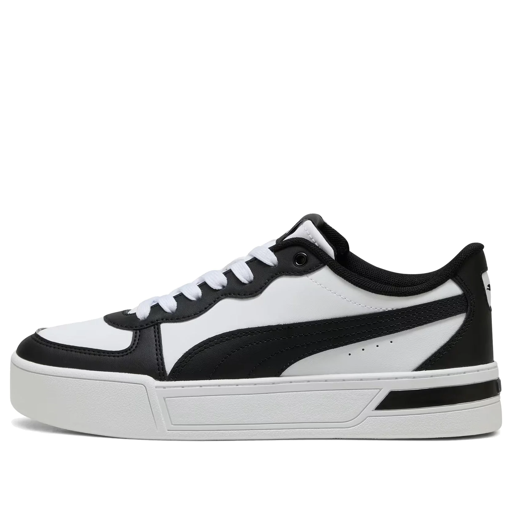 PRODUCT INFORMATION Model No: 374764-25 Closure: Lacing Release Date: 2024-11-06 Upper Material: Leather Thickness: Regular Sole Colorway: White/Black Toe Type: Round Toe Upper: Low Top Sole Material: Rubber Sole Color: white Series: Skye Occasion: lifestyle