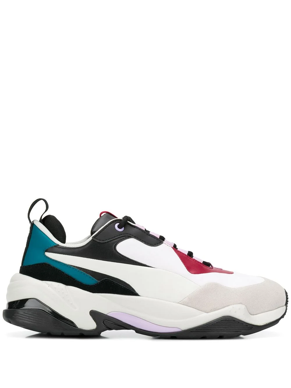 Thunder Rive sneakers Multicoloured leather and rubber Thunder Rive sneakers from PUMA featuring a round toe, a flat sole, a panelled colour block design, a lace fastening, a pull tab at the rear and a logo patch at the tongue. Imported Composition Lining: Polyester 100% Outer: Polyester 100%, Calf Leather 100% Sole: Rubber 100% SIZE & FIT Measurement Sole height 0.78 in(2 cm) HEEL 0.98 in(2.5 cm)