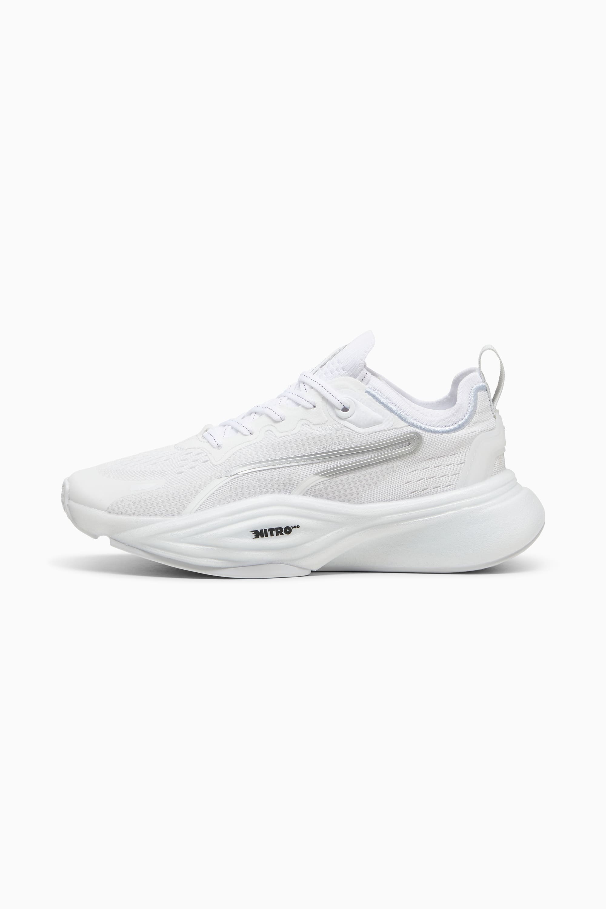 PRODUCT STORY Explosive energy meets all-around support. PWR NITRO™ SQD 2 training shoes power your workout with dual-density NITROFOAM™ provides enhanced midsole banking for lateral moves. PUMAGRIP traction grips any surface. Unleash your potential - these lightweight yet durable trainers handle everything from HIIT to strength training. Your workout will never be the same. FEATURES & BENEFITS - The upper of the shoes is made with at least 20% recycled materials - NITRO™ SQD: Innovative dual density NITRO™ SQD midsole combines best in-class cushioning and rebound with all around support – ideal for quick first step and explosive take-off - PUMAGRIP: Durable performance rubber compound designed for all-surface traction DETAILS - Style: 310147_04 - Color: PUMA White - Regular fit - Engineered mesh upper - Heel support system - Lace closure - PUMA branding details MATERIAL INFORMATION - Midsole: 100% Synthetic - Sockliner: 100% Textile - Outsole: 100% Rubber - Upper: 61% Textile, 39% Synthetic - Lining: 100% Textile