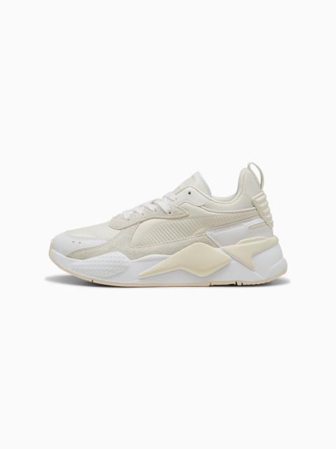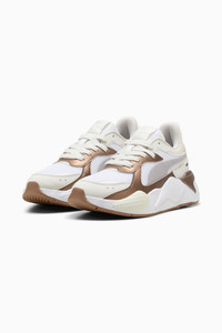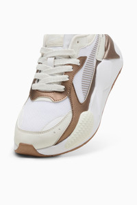 PRODUCT STORY RS-X is back. This future-retro silhouette made waves when it dropped in 2018, celebrated for its disruptive design, fresh material mixes, and bold colors. Today, RS-X returns for a new generation of consumers who live to express their individuality. It's here to start a revolution of self-expression. This Glow-Up version features a textile upper with plenty of metallic details. FEATURES & BENEFITS - The upper of the shoes is made with at least 30% recycled materials - Running System: PUMA's comfortable cushioning technology celebrates the reinvention of a unique moment and movement in culture DETAILS - Style: 398510_01 - Color: Vapor Gray-PUMA White - Regular fit - Textile upper - Synthetic overlays on vamp, eyestay, quarter, and heel - Textile lining - Lace closure - EVA midsole - Rubber outsole - Debossed and printed PUMA Formstrip - Metallic details and piping - PUMA branding details MATERIAL INFORMATION - Midsole: 100% Synthetic - Sockliner: 100% Textile - Outsole: 100% Rubber - Upper: 67% Synthetic, 33% Textile - Lining: 100% Textile