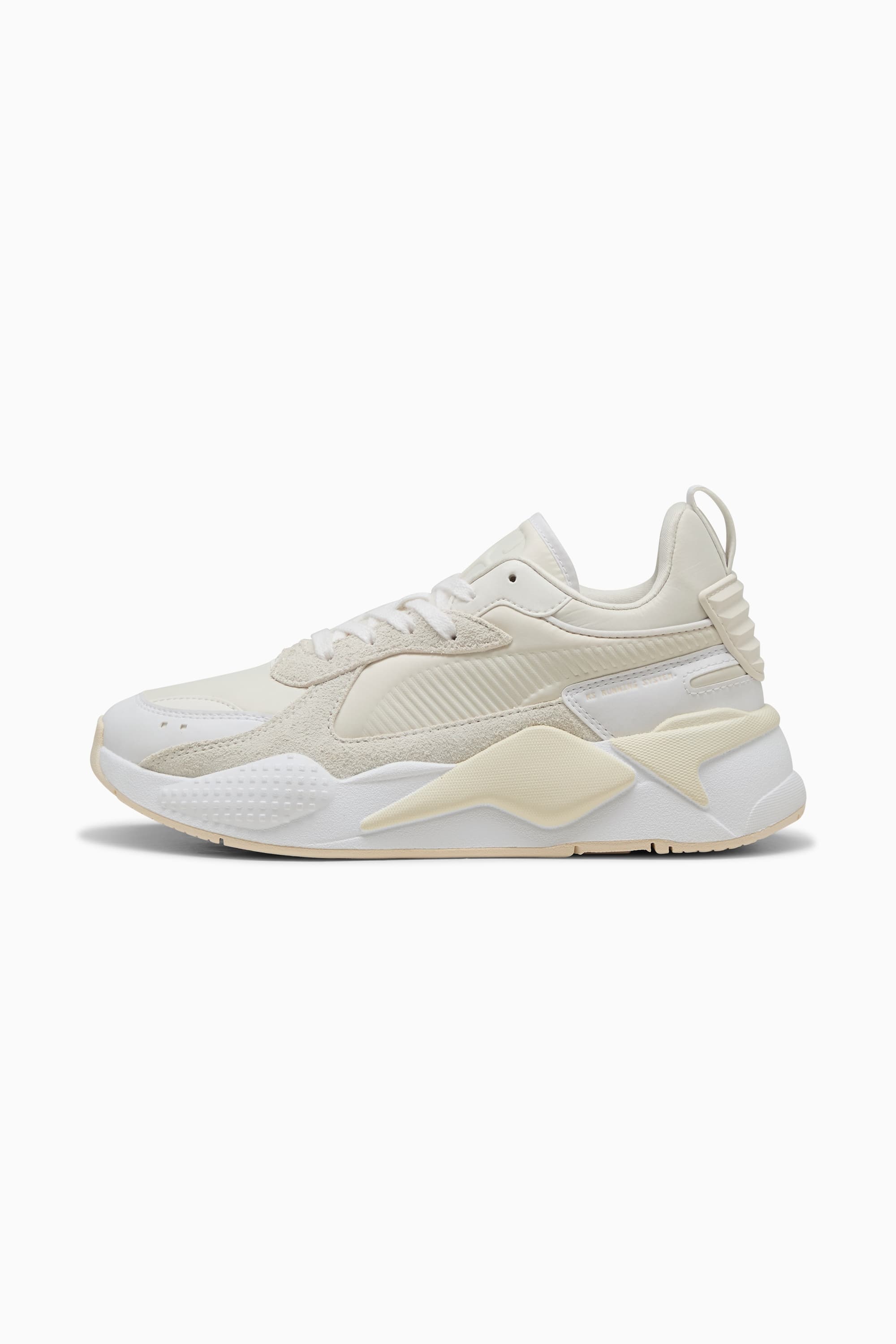 PRODUCT STORY The RS family is getting wider. Take on chilly weather in stride with the RS-X Winter Volume sneakers. Their moulded sockliner and EVA midsole provide cushioning with every step, while the textured outsole offers sure-footed grip. Finished with a puffed textile tongue, suede overlays, and sporting an athletic-inspired design, these sneakers inject high-performance style into your everyday. FEATURES & BENEFITS - Chrome-Free Leather: Made with Chrome-free Leather*. *chrome content does not exceed the limit standard as per ISO 15115-2019 - Running System: PUMA's comfortable cushioning technology celebrates the reinvention of a unique moment and movement in culture DETAILS - Style: 398513_02 - Color: Warm White-PUMA White - Regular fit - Textile upper - Suede overlays on quarter and eyestay; synthetic overlays on toe, eyestay, and heel - Textile lining - Lace closure - EVA midsole - Rubber outsole - Debossed and screen-printed PUMA Formstrip - TPU heel piece with synthetic webbing - PUMA branding details MATERIAL INFORMATION - Midsole: 100% Synthetic - Sockliner: 100% Textile - Outsole: 100% Rubber - Upper: 45% Textile, 29% Synthetic, 19% Leather - cow, 7% Rubber - Lining: 100% Textile