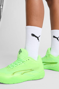 PRODUCT STORY Breanna Stewart has won everything there is to win the world of women's basketball. This third edition of her signature shoe is a representation of everything she has accomplished so far and the seeds she has sown for those that follow. It features a woven mesh upper and NITROFOAM™ midsole for responsive power and breathability to dominate the hardwood. FEATURES & BENEFITS - NITROFOAM™: Advanced nitrogen-injected foam designed to provide superior responsiveness and cushioning in a lightweight package DETAILS - Style: 380068_09 - Color: Green Glare-Galactic Gray - Regular fit - Engineered mesh upper - Floral tread pattern - TPU cage - PUMA branding details MATERIAL INFORMATION - Midsole: 100% Synthetic - Sockliner: 100% Synthetic - Outsole: 100% Rubber - Upper: 71% Synthetic, 29% Textile - Lining: 100% Textile