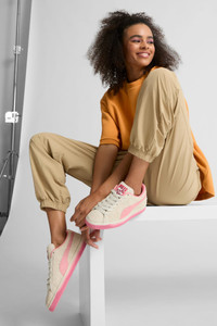 PRODUCT STORY Size up bold escapades in style with California Dreamin' Women's Sneakers. Their hairy suede kicks instantly transform city streets into sun-drenched shores. Gradient accents and pops of colour set the mood for adventure. Slip them on, hit the open road and chase the endless summer. FEATURES & BENEFITS - PUMA's leather products support responsible manufacturing via the Leather Working Group.www.leatherworkinggroup.com DETAILS - Style: 395905_01 - Color: Sugared Almond-Passionfruit - Hairy suede upper - Matte lycra lining and mesh sockliner - Cotton gradient laces - Hairy suede Formstrip on lateral sides - Debossed PUMA branding on the quarter panel and FOT MATERIAL INFORMATION - Sockliner: 100% Textile - Outsole: 100% Rubber - Upper: 100% Leather - cow - Lining: 100% Textile