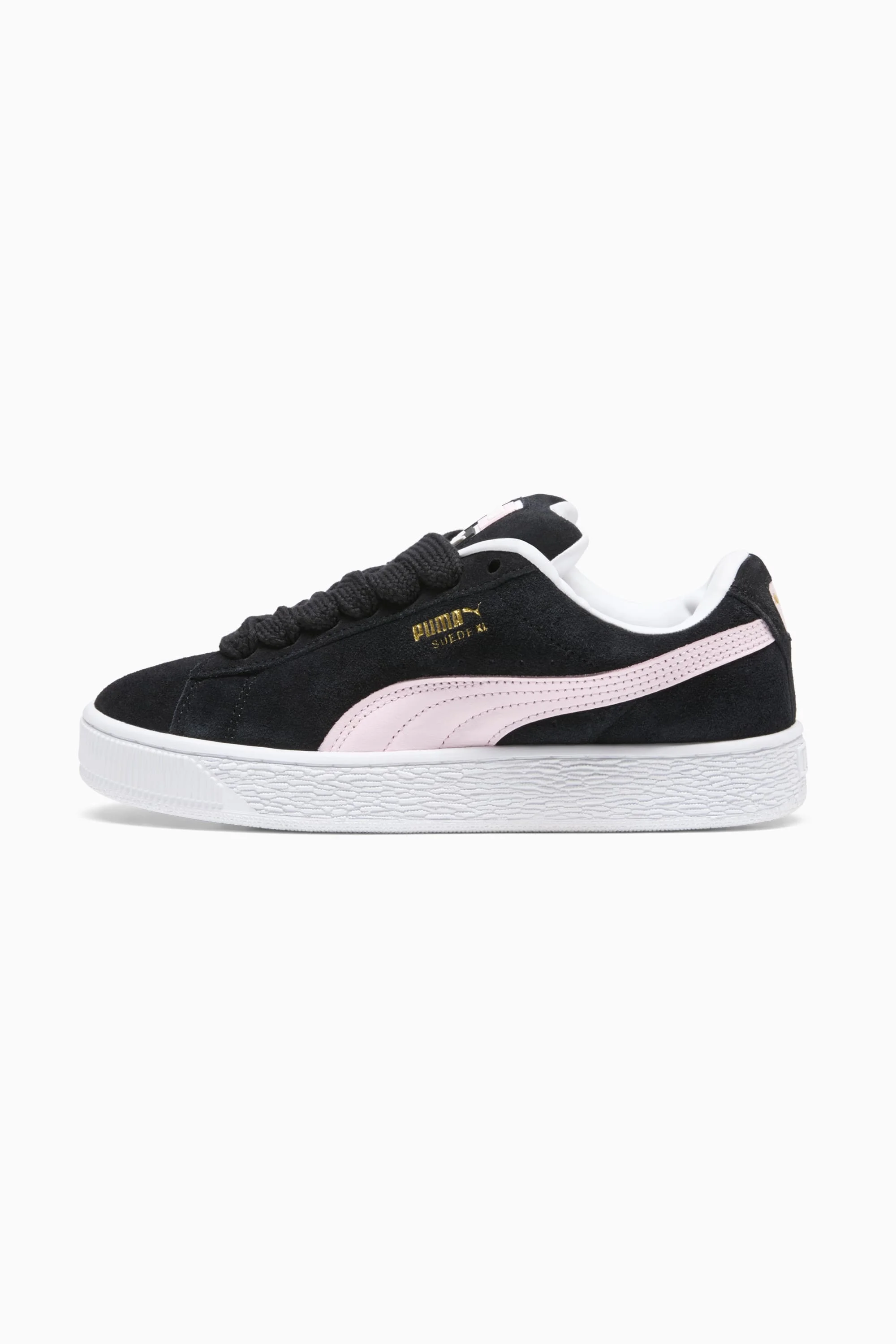 PRODUCT STORY This larger-than-life remix of the iconic Suede Classic has been blazing its own path. The Suede XL draws from PUMA's Y2K-inspired styles while retaining classic Suede DNA. But there's a twist. With its extra padding, extra-large tongue, and extra-thick laces, Suede XL maximizes everything. This sneaker is the perfect mix of understated and elevated. FEATURES & BENEFITS - PUMA’s leather products support responsible manufacturing via the Leather Working Group.www.leatherworkinggroup.com DETAILS - Style: 397648_04 - Color: PUMA Black-Whisp Of Pink - Regular fit - Suede upper - Mesh insole with multiple screen-printed PUMA logo - Suede tongue with mesh trim - CPU Part Tab Label - Mesh lining - Rubber midsole - Rubber outsole MATERIAL INFORMATION - Sockliner: 100% Textile - Outsole: 100% Rubber - Upper: 97.19% Leather - cow, 2.81% Synthetic - Lining: 100% Synthetic