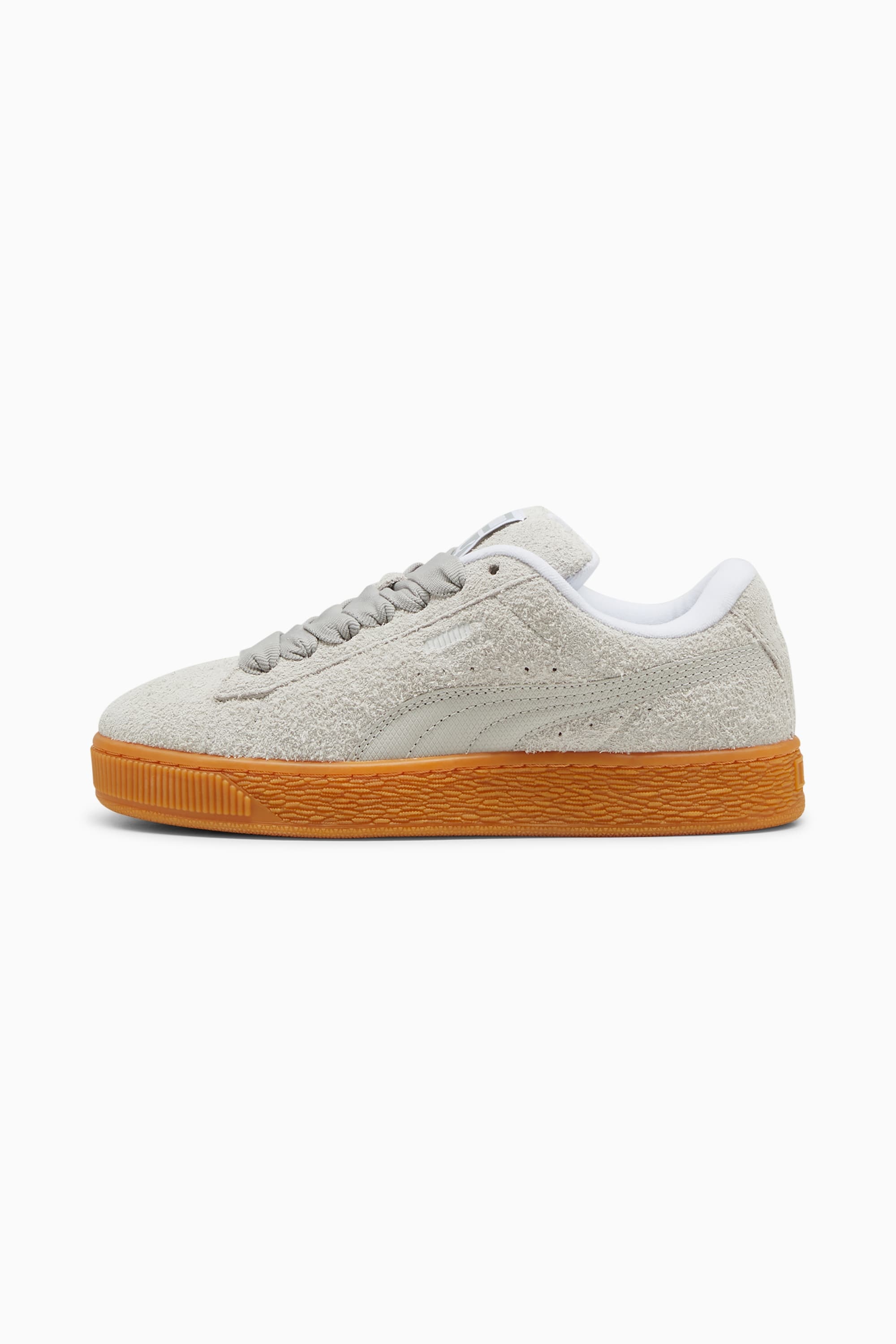 PRODUCT STORY The Suede hit the scene in 1968 and has been changing the game ever since. It's been worn by icons of every generation, and it's stayed classic through it all. The Suede XL retains the Suede's iconic DNA, but gives it a twist with an exaggerated padded collar and tongue, plus a chunkier sole. This version features a hairy suede upper and cotton laces. FEATURES & BENEFITS - PUMA's leather products support responsible manufacturing via the Leather Working Group: www.leatherworkinggroup.com - SOFTFOAM+: Step-in comfort sockliner designed to provide soft cushioning thanks to its extra thick heel DETAILS - Style: 398309_02 - Color: Feather Gray-Gum - Regular fit - Hairy suede upper - Textile lining - Cotton laces - Rubber midsole and outsole - Debossed suede PUMA Formstrip - PUMA branding details MATERIAL INFORMATION - Sockliner: 100% Textile - Outsole: 100% Rubber - Upper: 100% Leather - cow - Lining: 100% Textile