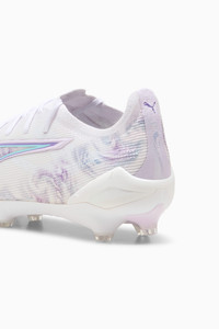 PRODUCT STORY Too fast for them. Just right for you. Introducing ULTRA 5 ULTIMATE Women's Fit. This soccer cleat combines a brand-new SPEEDSYSTEM outsole and a FastTrax stud design with measurements optimised for a women's foot, so you can feel better and play faster than ever before. This version is part of the Brilliance Pack, celebrating the brilliance of the women's game and inspiring the next generation to shine even brighter. FEATURES & BENEFITS - ACCELERATION: The SPEEDSYSTEM outsole design combines a high-performance fibre base material with a revolutionary stud system, maximising energy return for faster acceleration - TRACTION: FastTrax stud design using insights from academic research and traction studies to provide more traction while accelerating, cutting and breaking - STABILITY: PWRTAPE SQD support frame stabilises the foot inside of the boot without hindering agility or freedom of movement DETAILS - Style: 108178_01 - Color: PUMA White-PUMA Black-Spring Lavender - Lightweight mesh upper - Lightweight removable sockliner with NanoGrip technology keeps the foot from slipping inside the boot - OrthoLite® heel cushioning for better lockdown - GripControl Pro skin: Super-thin textured skin designed for improved ball control no matter the pitch conditions - SPEEDSYSTEM outsole - Women's Fit: This football boot is made for women, with measurements such as volume and instep height engineered for the female foot - Low-cut slip-on construction - FG: Suitable for use on firm ground MATERIAL INFORMATION - Sockliner: 100% Synthetic - Outsole: 100% Synthetic - Upper: 86.62% Synthetic, 13.38% Textile - Lining: 79.50% Textile, 20.50% Synthetic