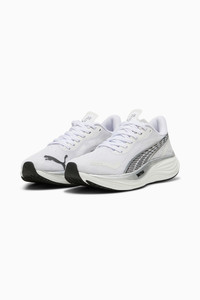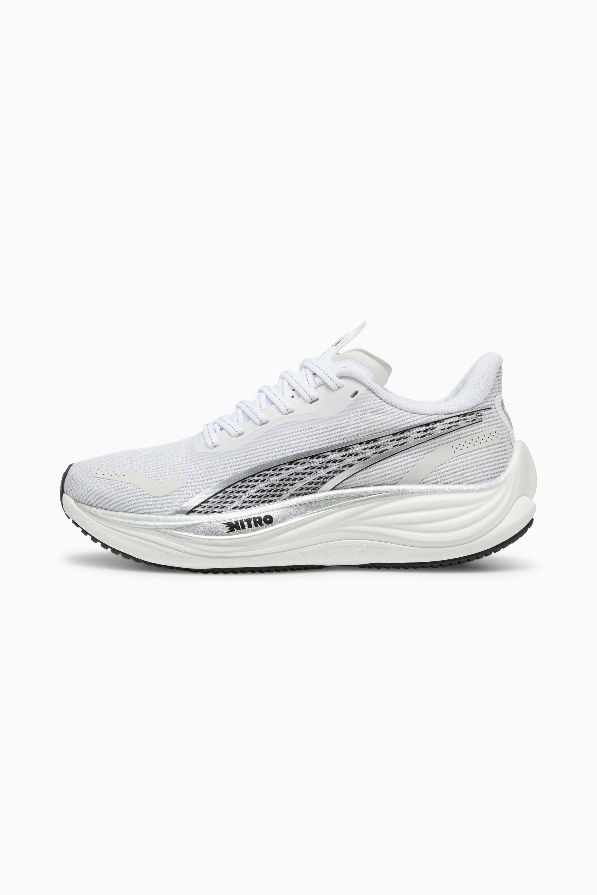 PRODUCT STORY The PUMA Velocity NITRO™ 3 – with this shoe, we're taking industry-best and bringing it to you. These kicks are all about speed and comfort thanks to advanced NITRO™ technology, offering superior responsiveness and cushioning in a lightweight package that feels like you're running on clouds. Plus, with the heel spoiler, you not only get a sleek look but you'll also benefit from enhanced stability for confident strides. Get ready to up your running game with the Velocity NITRO™ 3. It's not just a shoe; it's a statement. FEATURES & BENEFITS - NITRO™ Advanced technology providing superior responsiveness and cushioning in a lightweight package - PUMAGRIP: Lightweight rubber outsole provides grip for your most powerful toe-off - ENGINEERED MESH UPPER: Premium material engineered for breathability and reinforced with PWRTAPE DETAILS - Style: 377749_05 - Color: PUMA White-PUMA Silver-PUMA Black - TPU heel spoiler for stability - Cushioning level: medium - Lace closure - Heel-to-toe drop: 8mm - Pronation level: Neutral - Low boot MATERIAL INFORMATION - Sockliner: 100% Textile - Outsole: 100% Rubber - Upper: 63.70% Textile, 36.30% Synthetic - Lining: 100% Textile